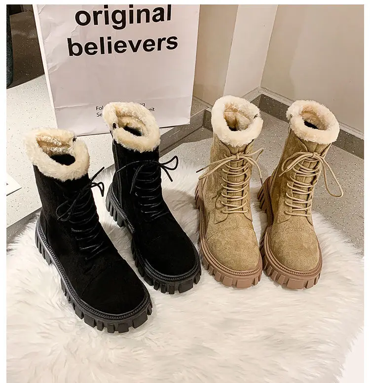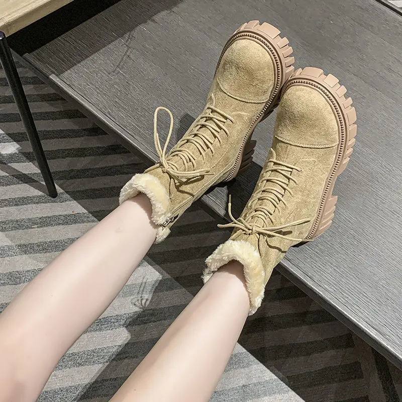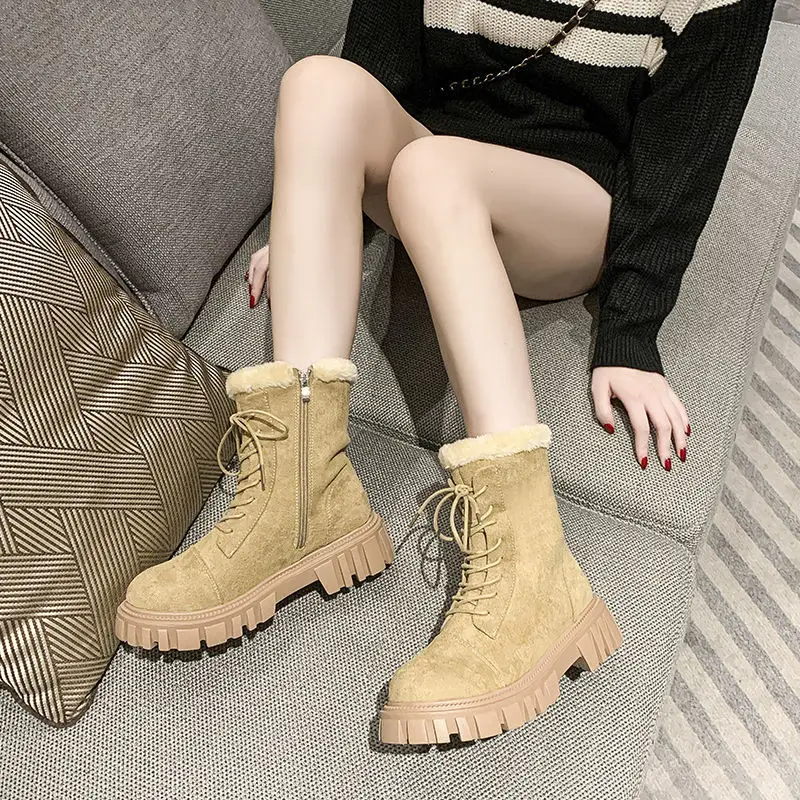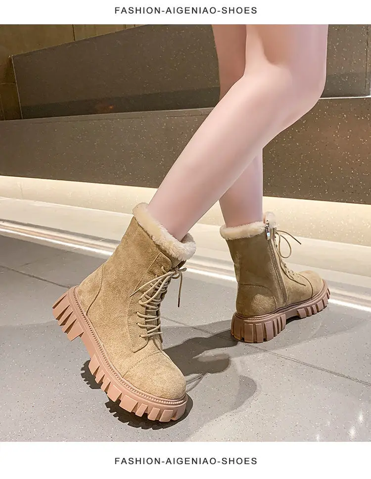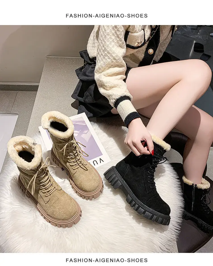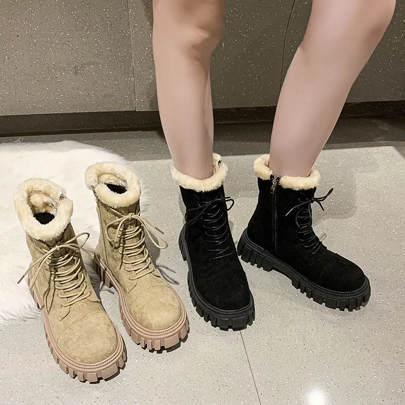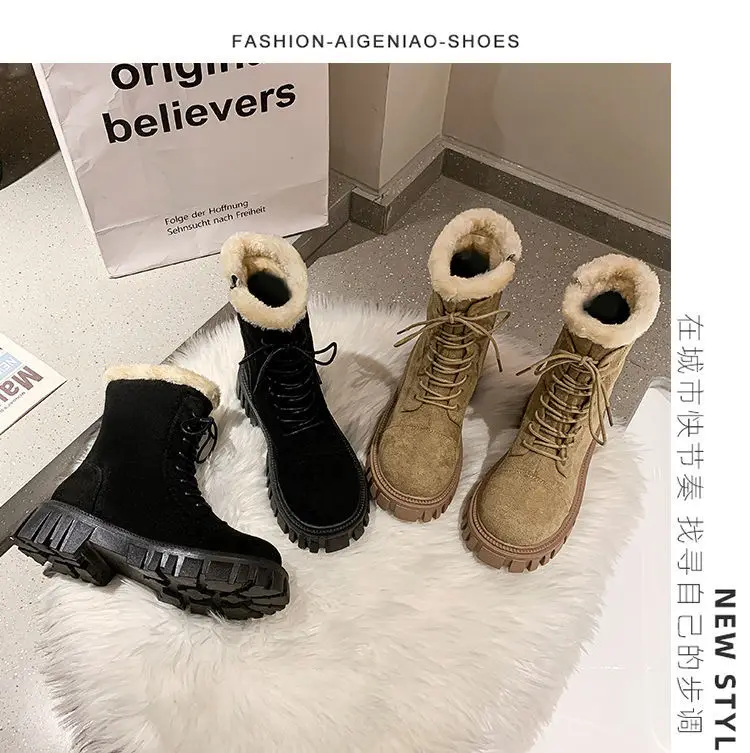 Женские зимние ботинки 2022, замшевые ботинки из искусственной кожи, новинка, большие размеры, толстые теплые женские зимние ботинки, повседневные женские ботильоны