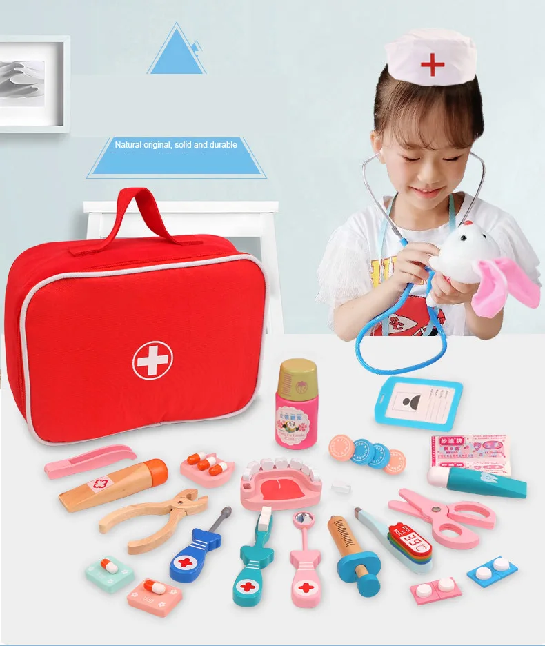 Набор докторских игрушек для детей, Детский деревянный комплект для...