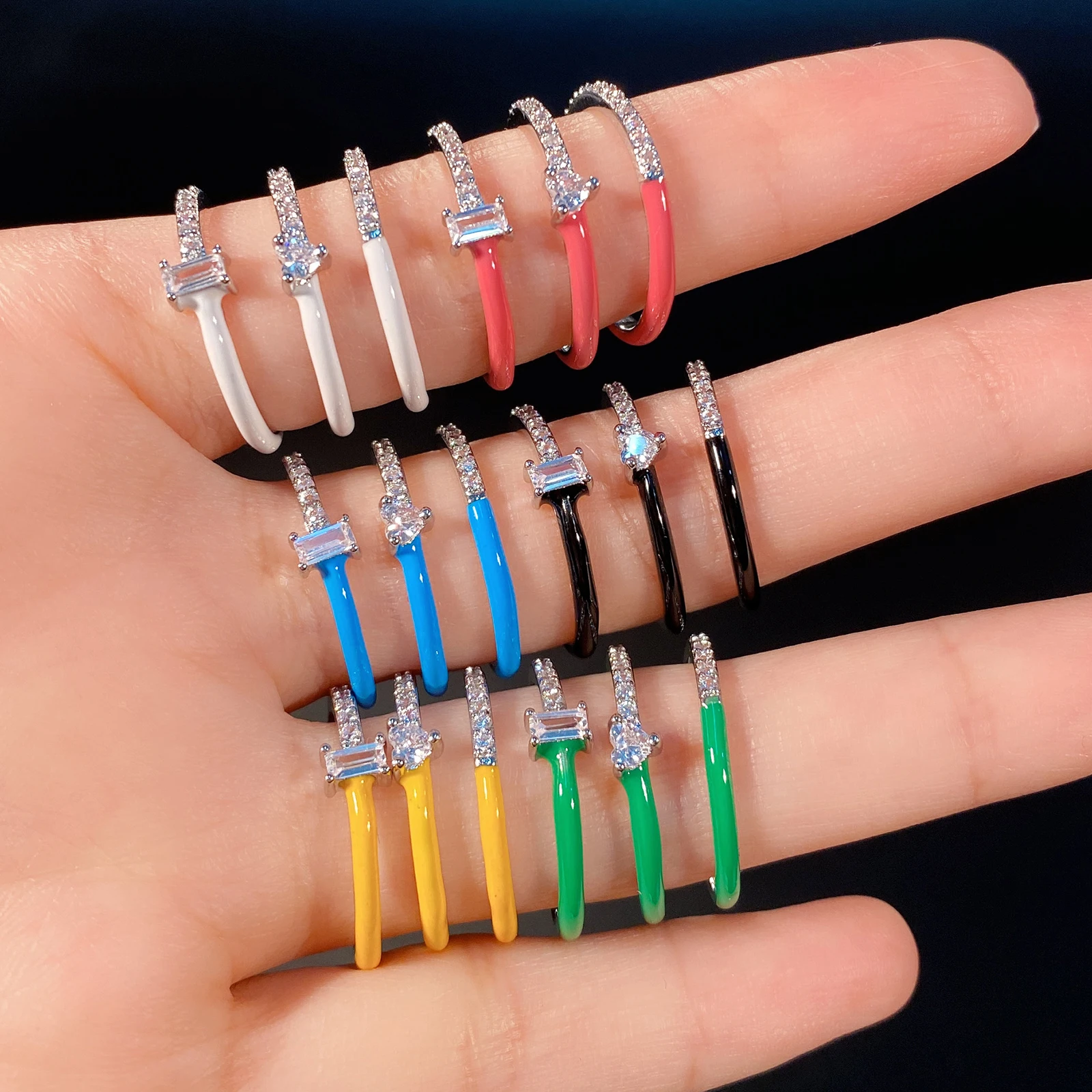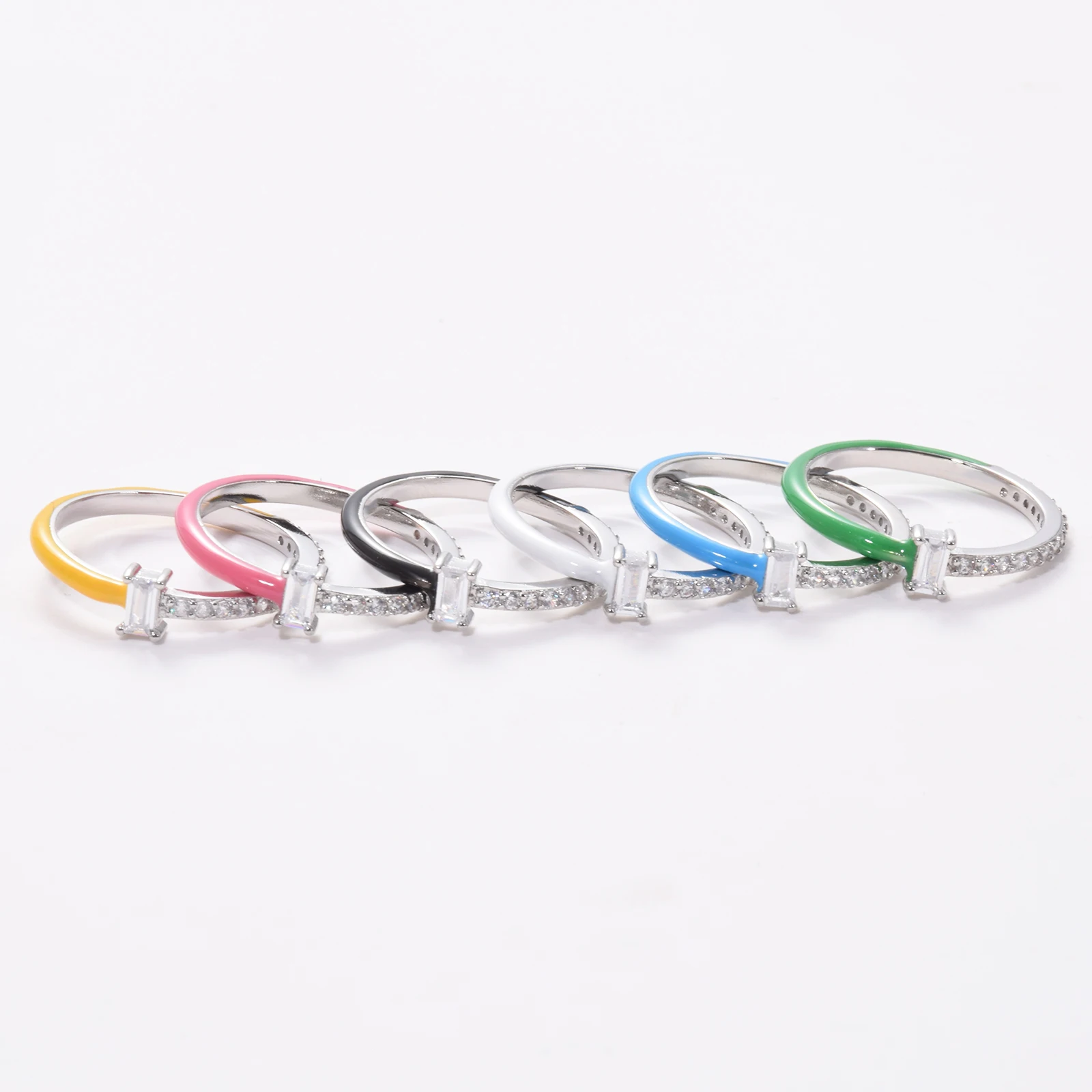 Разноцветные эмалевые циркониевые штабелируемые кольца для женщин, ...
