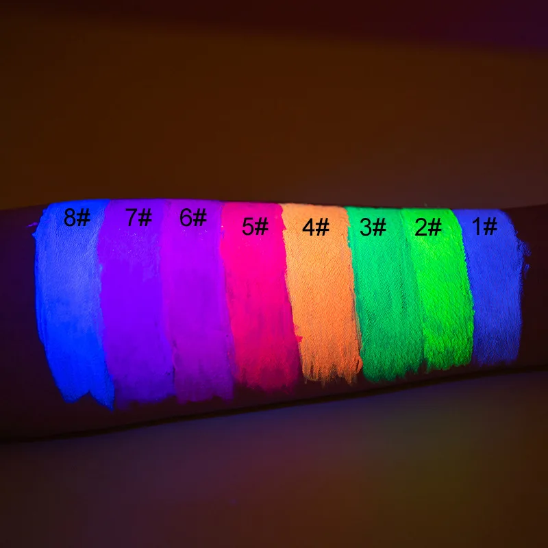 Beckisue 2021 Новый флуоресцентный набор краски для подводки глаз 8 1. Истинная флуоресценция, она может показать флуоресцентный эффект под ультрафиолетовым светильник (фиолетовый светильник). Примечание: Если светильник отсутствует в ночное время, он не излучает светильник. Под солнцем насыщенность лучше, чем обычная цветная подводка для глаз, которая очень ослепительна! 2. Тонер легко оседает, вам нужно более энергично встряхнуть его перед использованием, чтобы сделать жидкость ровной, эффект будет лучше! 3. Отличный эффект окраски, быстрое высыхание, водонепроницаемость и защита от пота, протрите теплой водой, чтобы удалить макияж. Можно использовать как подводку для глаз или другую краску для лица. 4. Используйте с осторожностью, если у вас аллергия на флуоресцентные вещества. Вес брутто одного набора составляет 96 г, каждый набор состоит из 8 штук, размер одного набора цветных коробок: 123x95x15мм