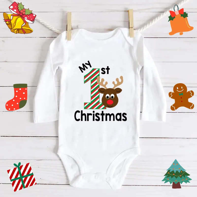 Мой первый Рождественский боди с длинным рукавом для маленьких маль...