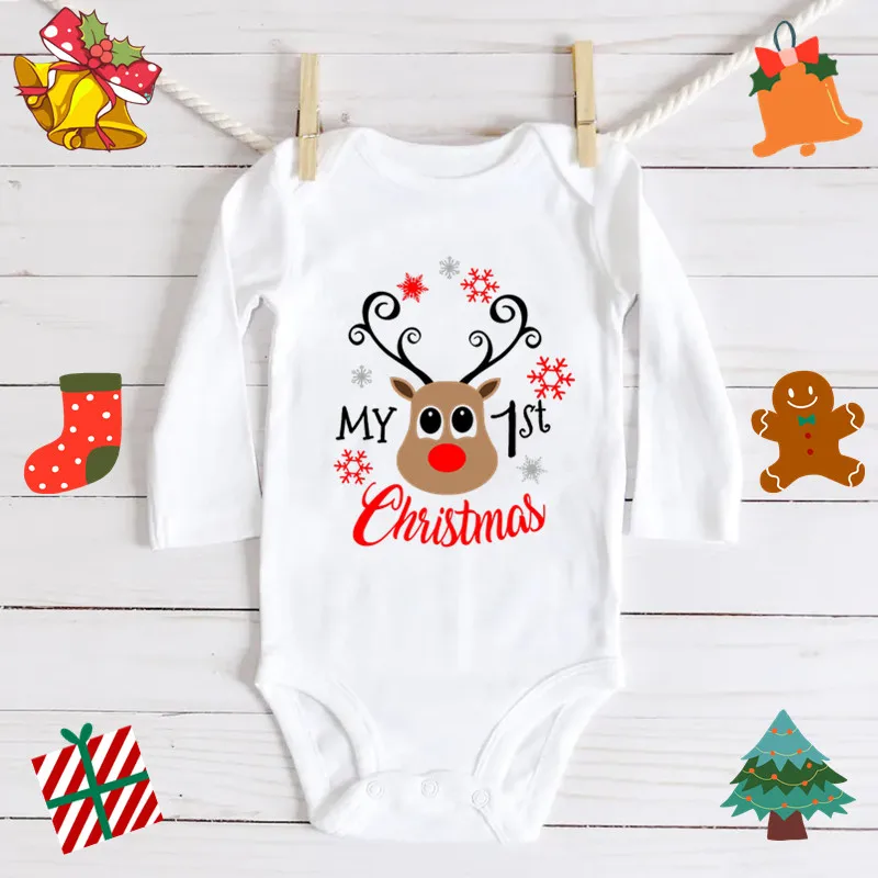 Мой первый Рождественский боди с длинным рукавом для маленьких мальчиков и девочек, одежда с милым принтом оленей, Рождественская одежда для маленьких девочек