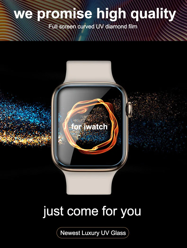 Пленка из закаленного стекла с УФ-клеем для Apple Watch 7 6 SE 5 4 ...