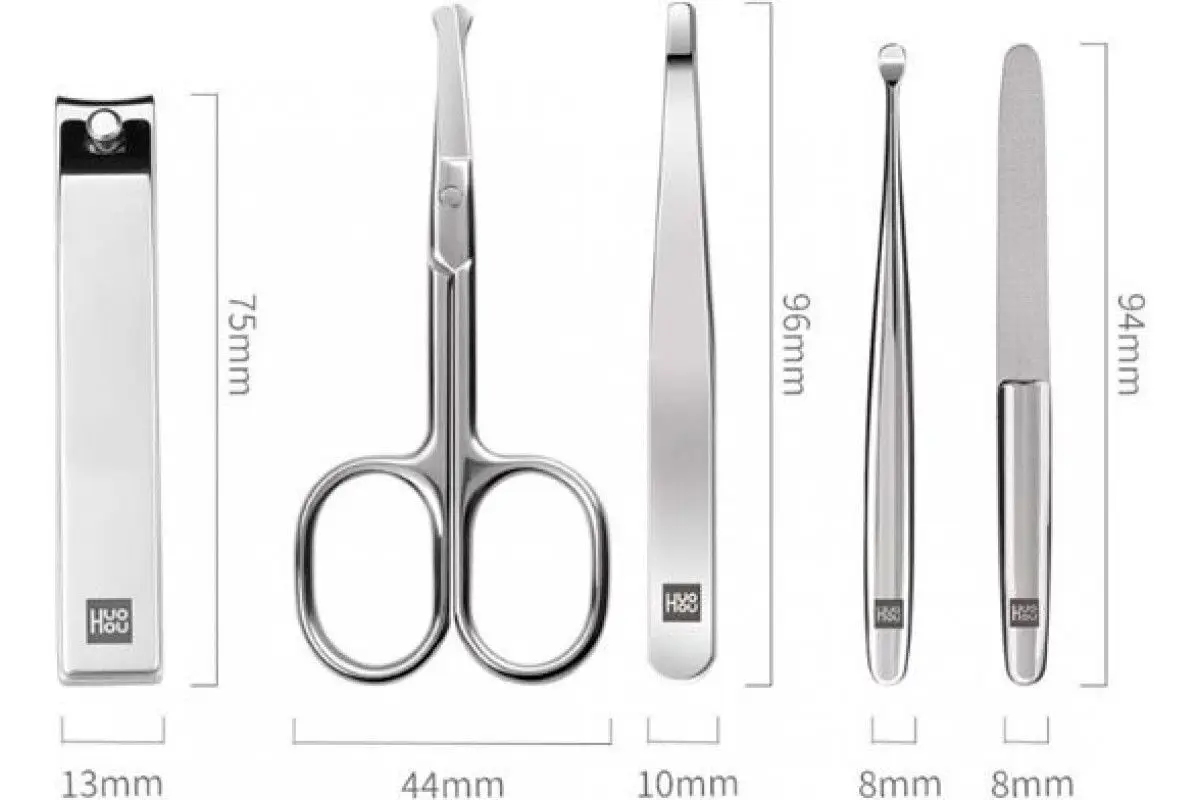 НАБОР ДЛЯ МАНИКЮРА XIAOMI HUO HOU NAIL CLIPPERS SET5 предметов в одном комплектеНабор для маникюра HuoHou состоит из 5 предметов: кусачек для ногтей, ножниц для удаления волос из носа, пинцета для бровей, кюретки для ушей и пилочки для ногтей.Все 5 предметов маникюрного набора изготовлены из нержавеющей стали с высокой прочностью и отличной устойчивостью к коррозии. Нержавеющая сталь прошла 8 технологических процессов зеркальной полировки, благодаря чему маникюрный набор смотрится так элегантно.С острыми маникюрными кусачками вы легко подстрижете ногти, после чего вы можете воспользоваться пилочкой для ногтей. Ножницы для удаления волос, имеют скругленные кончики, чтобы не повредить носовую полость в процессе удаления волос.Слегка наклонная конструкция пинцета, позволит быстро и аккуратно удалить лишние волоски с бровей, а кюретка, с наконечником в виде лопатки, поможет бережно удалить ушную серу.Для хранения маникюрного набора предусмотрен симпатичный чехол с фирменным логотипом производителя.
