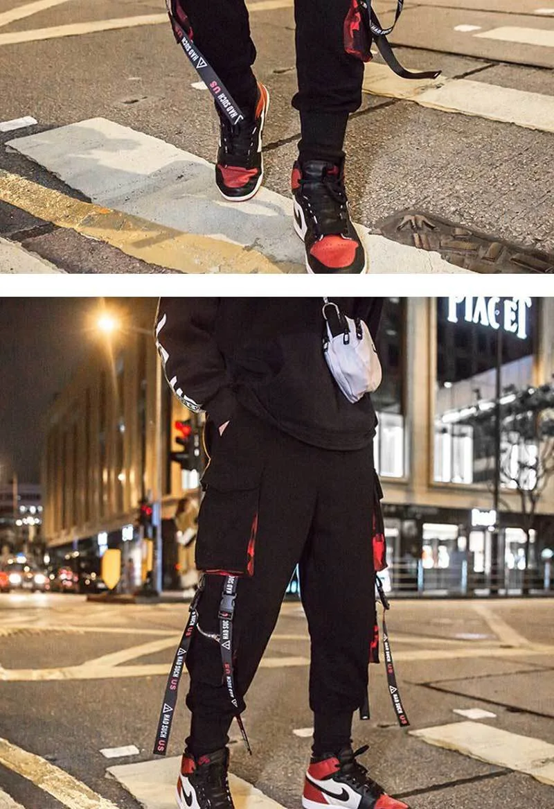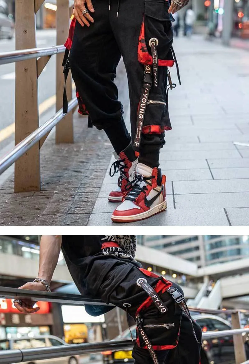 Джоггеры-карго для мужчин, повседневные брюки в стиле хип-хоп, с карманами, спортивные штаны, уличная одежда, штаны Techwear с лентами, A20
