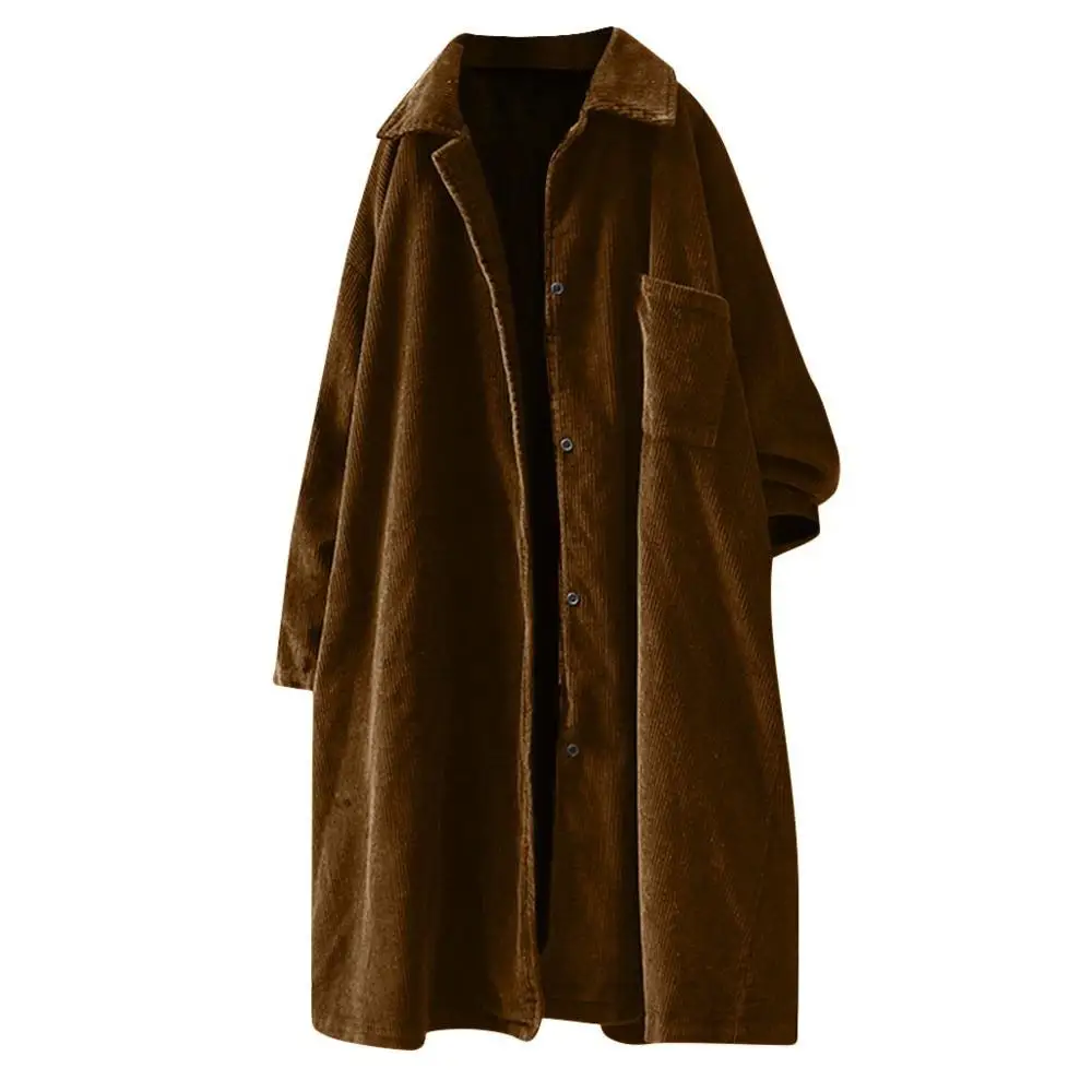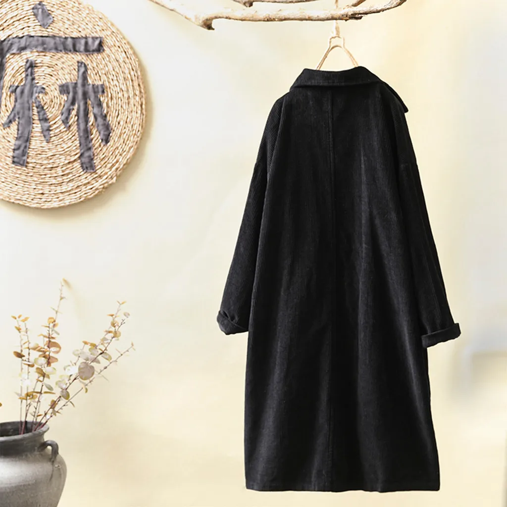 Винтажная Вельветовая однотонная женская куртка 2020 Новое поступление зимнее теплое свободное повседневное пальто с карманами и рукавами на пуговицах размера плюс M-5XL