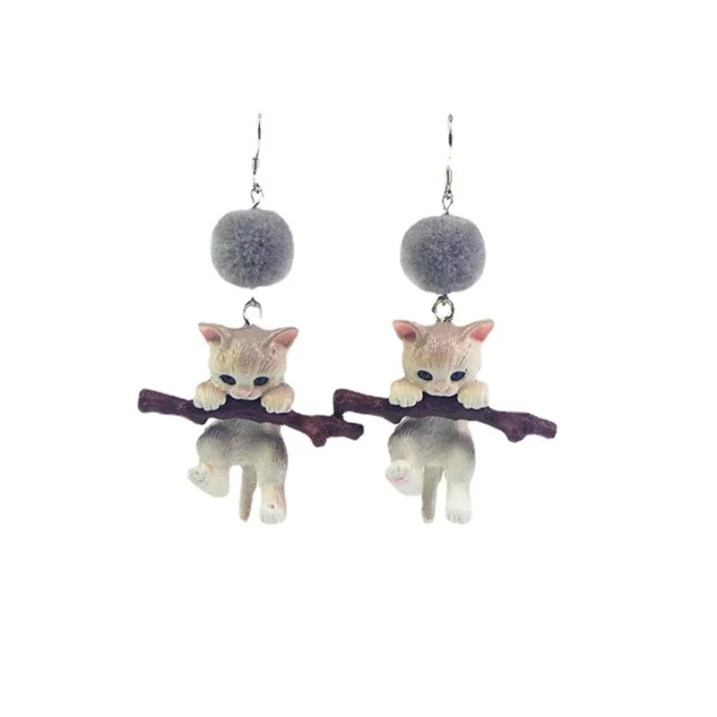Новые забавные и милые серьги-обнимашки с котом, серьги с шариком для волос, веткой, котом, девочкой, сердцем, шариком для волос, ювелирные изделия, подарок, оптовая продажа
