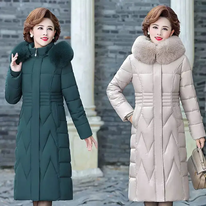 Женский длинный пуховик с капюшоном, зимняя ветрозащитная куртка с большим карманом и меховым воротником, стеганое пальто оверсайз, s1348, 2021