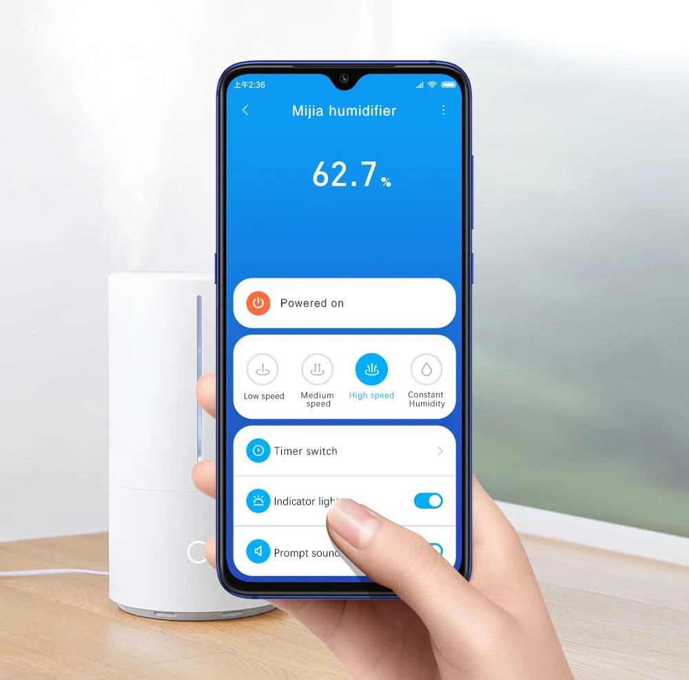 Как новый член smart home, умный стерилизационный увлажнитель Mi jia подключен к WiFi и может управляться через приложение mi Home.