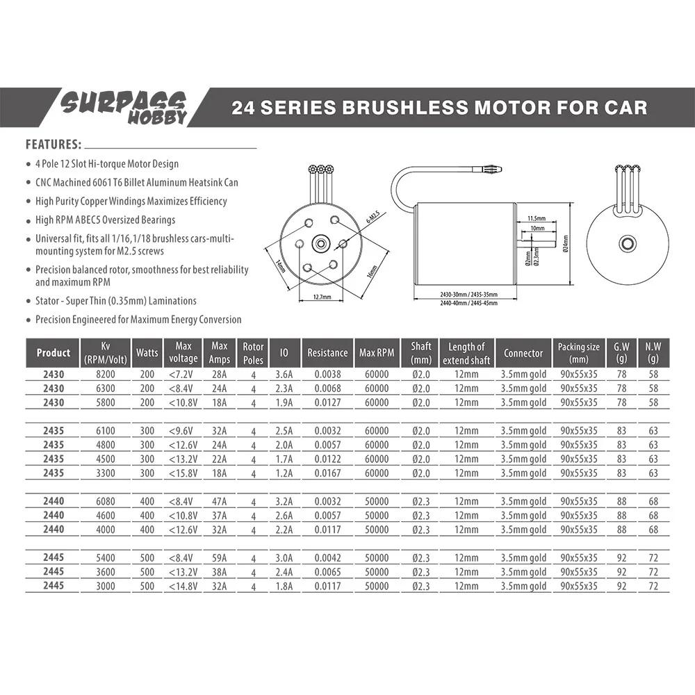 Водонепроницаемый бесщеточный двигатель Surpass Hobby 2440 2430 243...