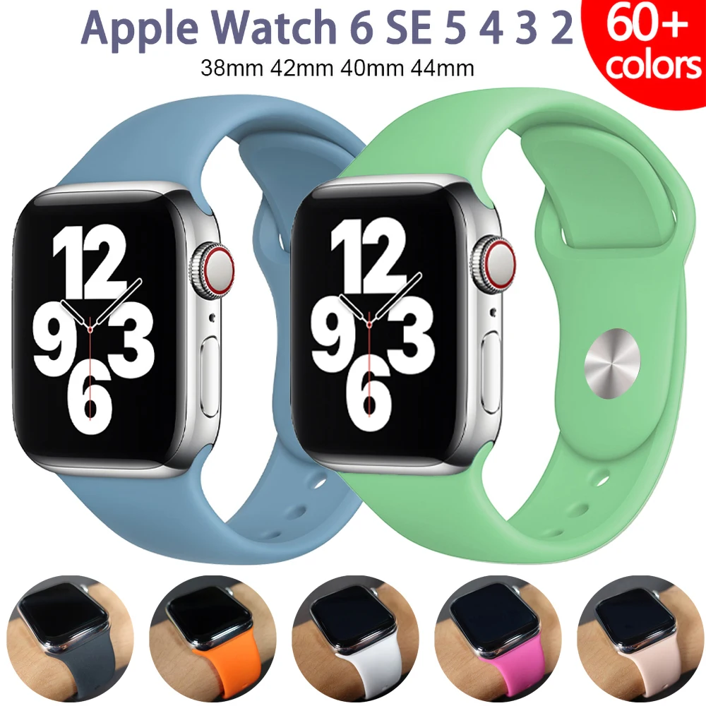 Ремешок силиконовый для Apple Watch band 44 мм 41 мм 45 мм 40 мм 38 мм 42 мм, спортивный браслет для смарт-часов iWatch 7 Series 6 SE