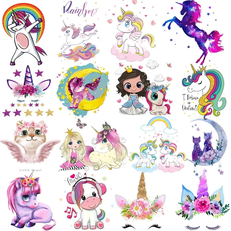 Аппликация с мультяшным единорогом для девочек, термотрансферные наклейки для одежды, термотрансферы с изображением единорога и животного для детской одежды