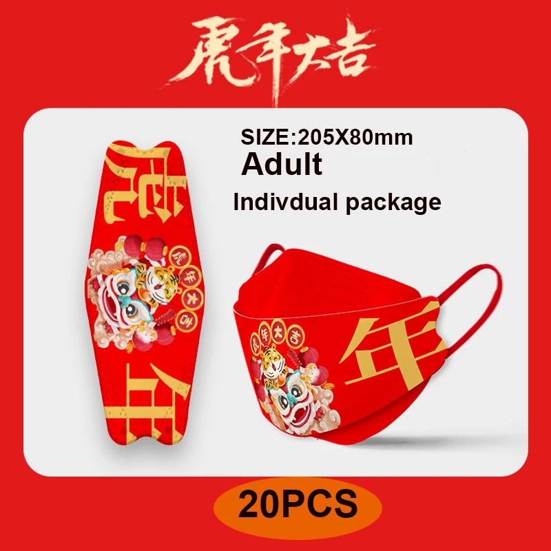 Маска KN95 Рождественская маска для взрослых одноразовая маска четырехслойная Пылезащитная новогодняя маска ffp2mask с узором тигра одноразовая черная маска