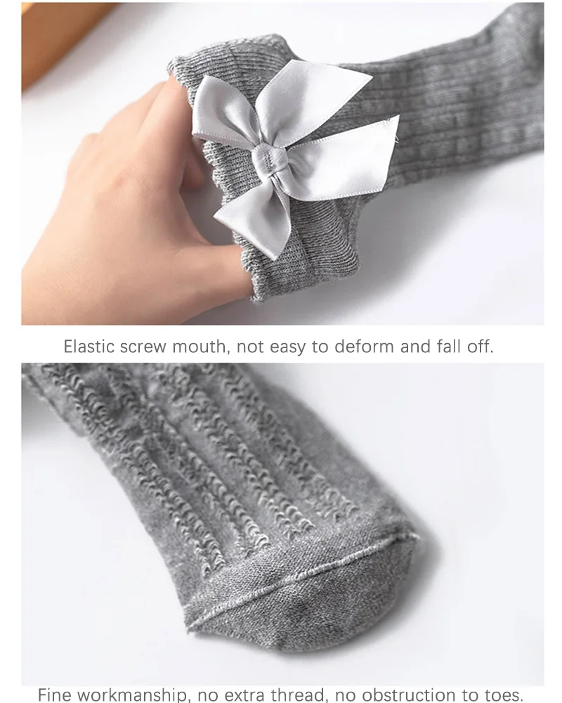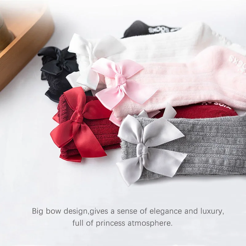 Носки для новорожденных девочек, новые детские носки, гольфы для маленьких девочек с большим бантом, длинные мягкие хлопковые детские носки для принцесс