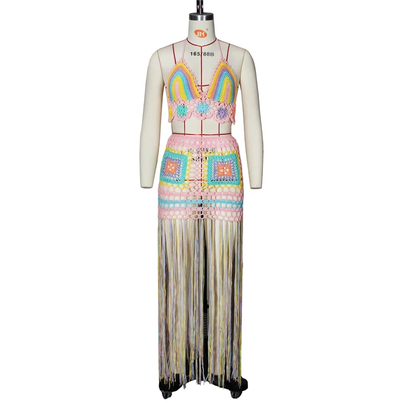Adogirl ручной вязки Красочный Летний Пляжный комплект из двух част...