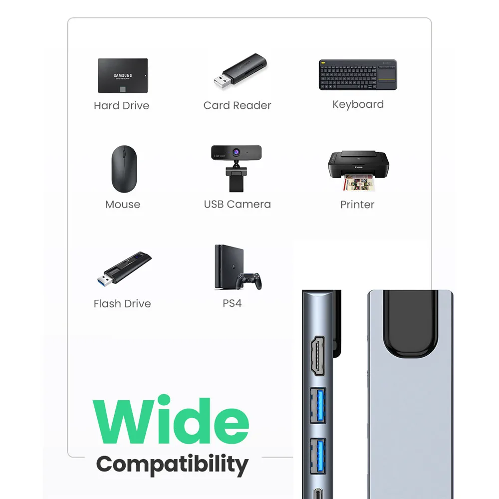 USB-концентратор 5 в 1, с Type-C на 100 м, 10 Мбитс