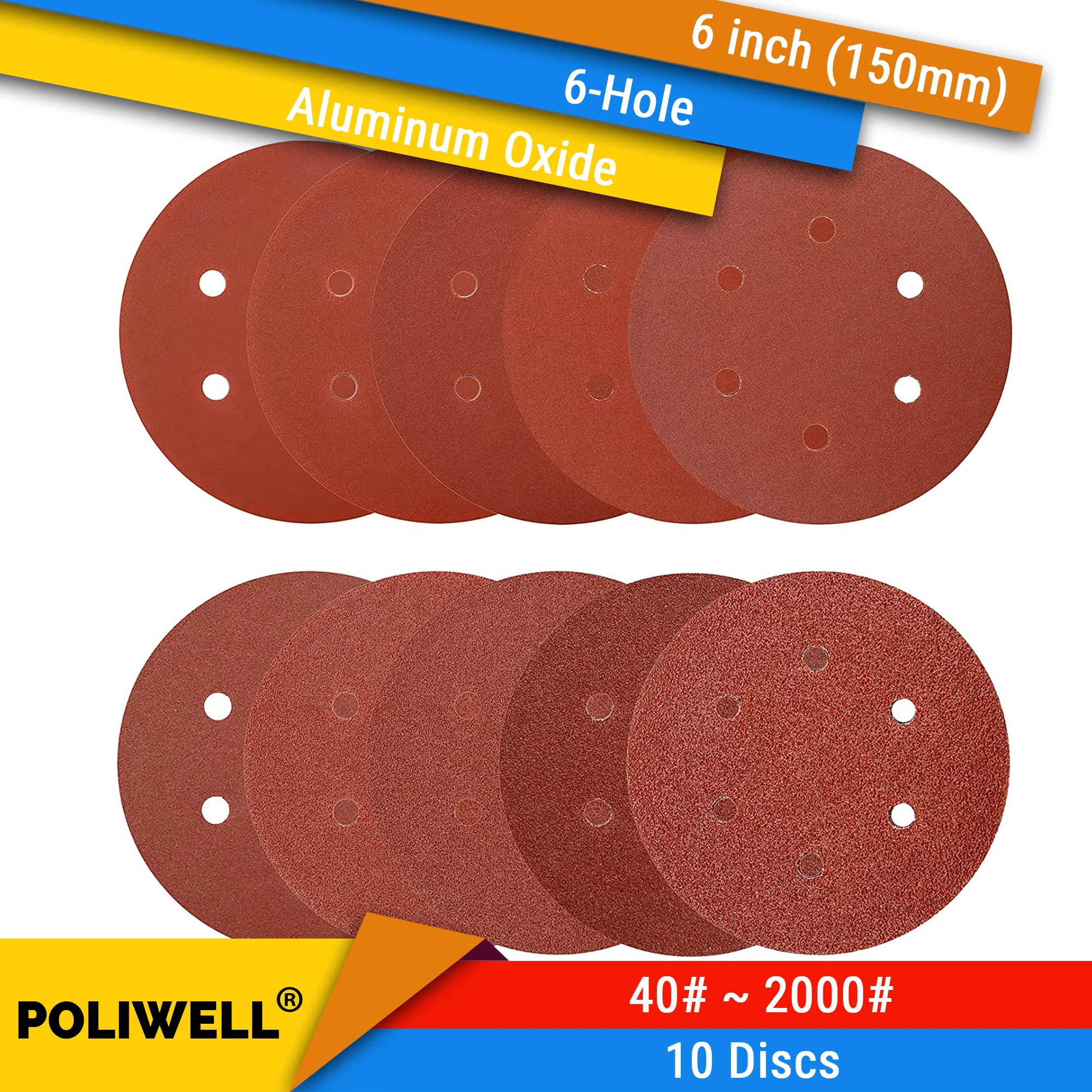 10 шт., 6 дюймов (150 мм), 6 отверстий, крючок и петля из оксида алюминия, шлифовальные диски для деревообработки, электроинструменты, полировальные аксессуары