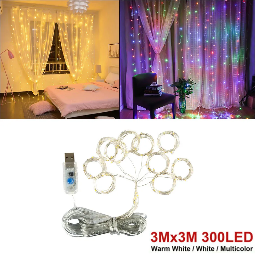 3x 2/3x 3 светодиодный гирляндой пульт дистанционного управления Шторы гирлянды для декора комнаты вечерние Декор Рождественская гирлянда водопад настенные светильники Демонстрация покупателя