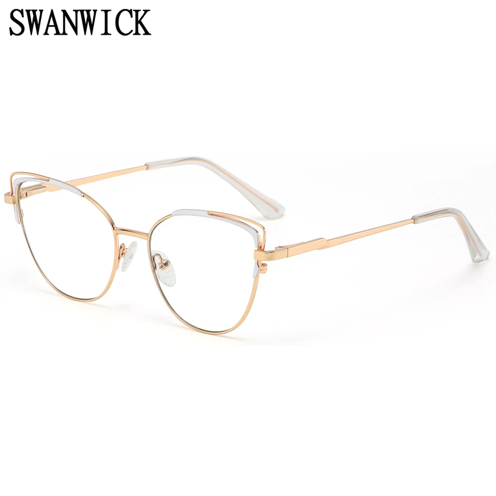 Swanwick, винтажная оправа кошачий глаз, белая оправа, синий светильник, блокирующие очки, прозрачные металлические оправы для очков, Женские аксессуары, черное золото