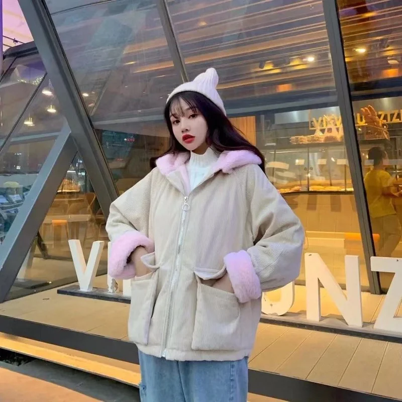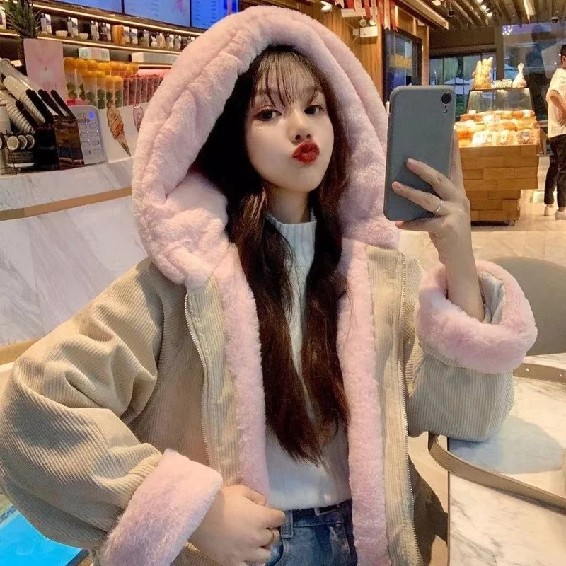 Пальто женское зимнее вельветовое, теплая куртка из натурального вельвета и хлопка, имитация норки в Корейском стиле Харадзюку, для студенток