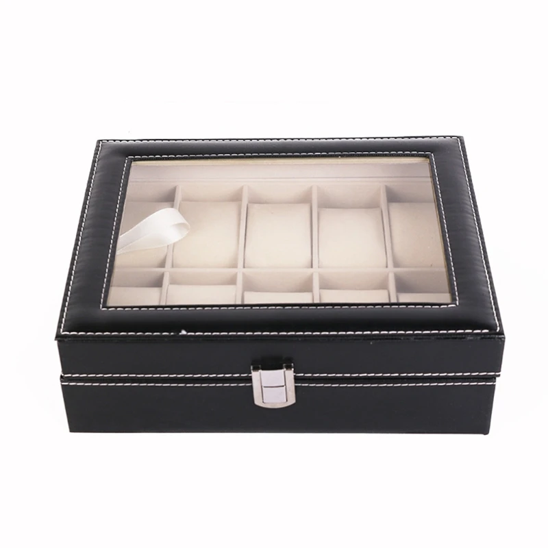Роскошная коробка для часов с 10 ячейками из искусственной кожи, чехол для часов, органайзер для ювелирных изделий с замком, прозрачная стеклянная крышка, запирающийся