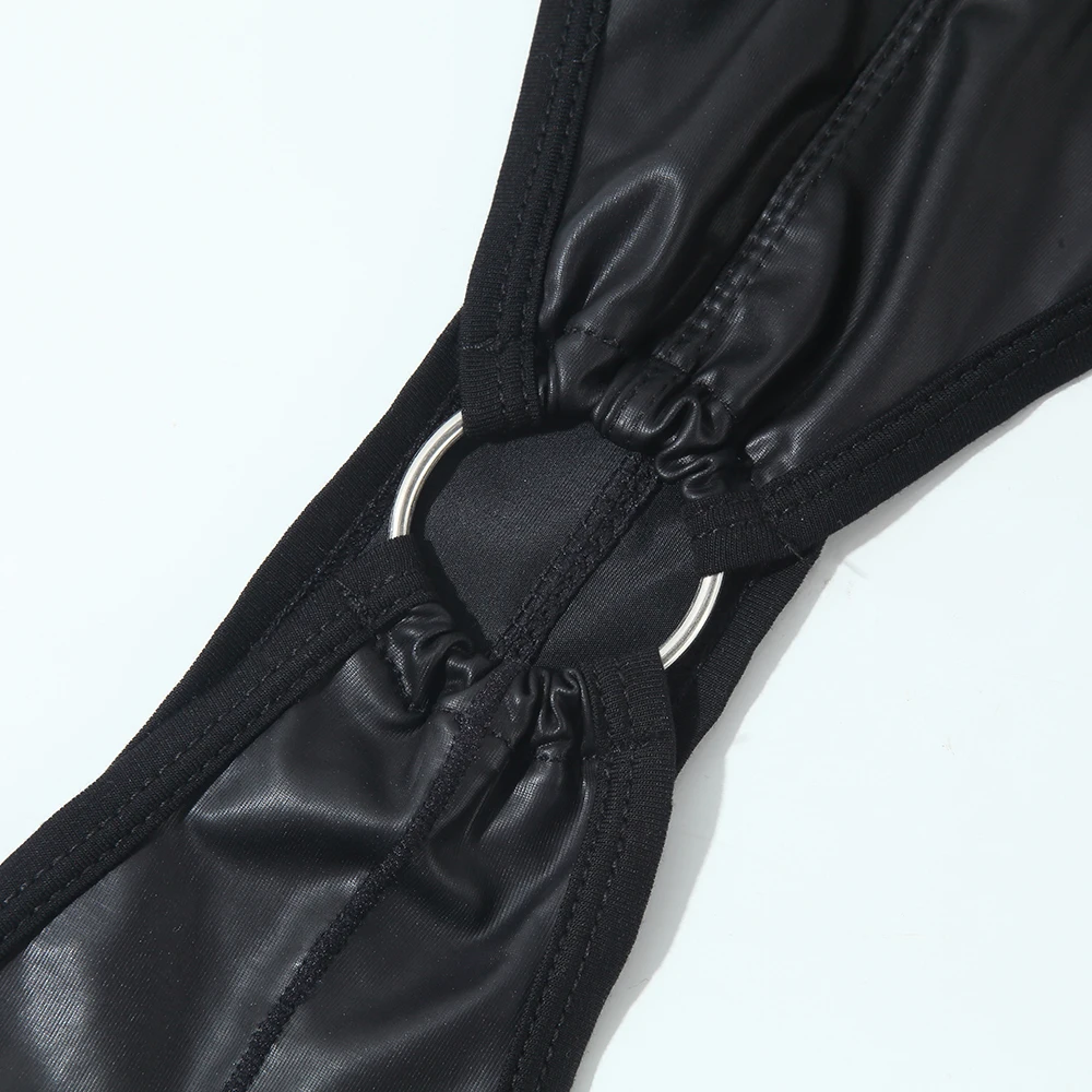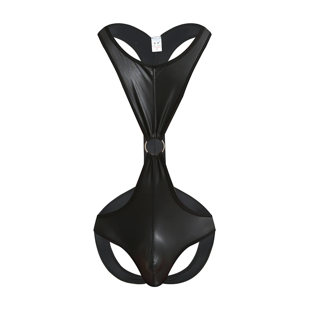 Сексуальное нижнее белье для геев, нижнее белье, кожаные мужские боди, экзотические костюмы, мужские боди с кольцами, бандаж на спине, трусы с выпуклым мешочком