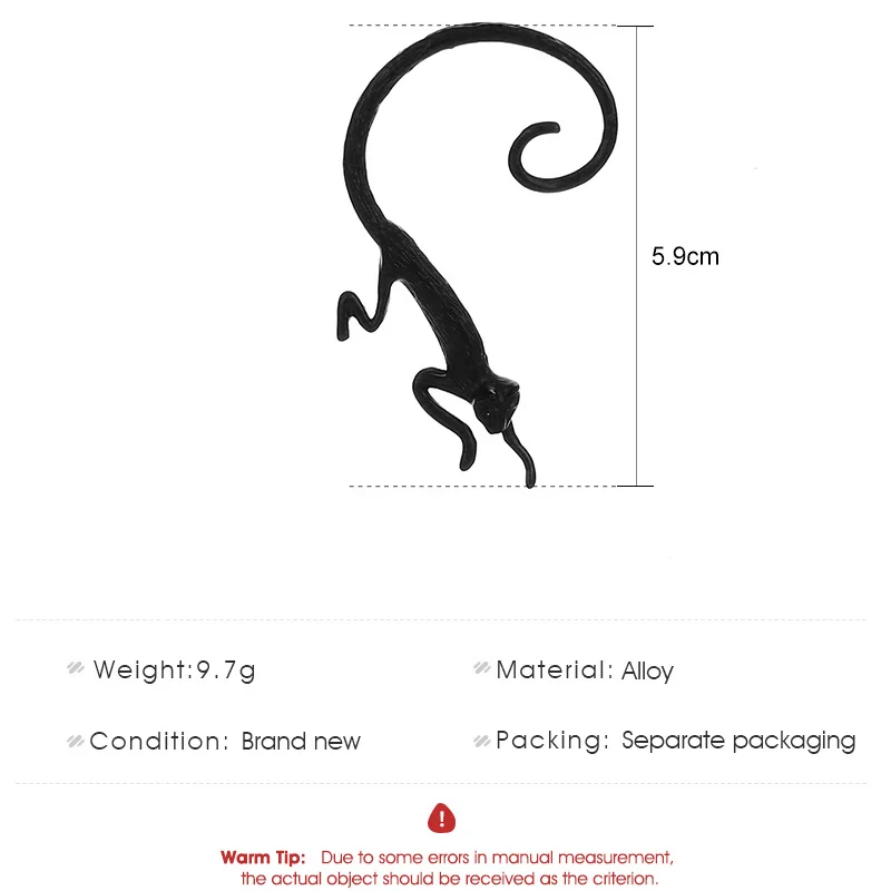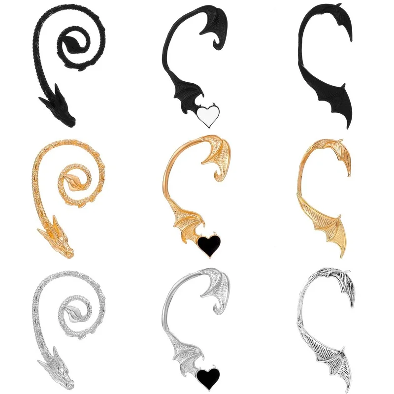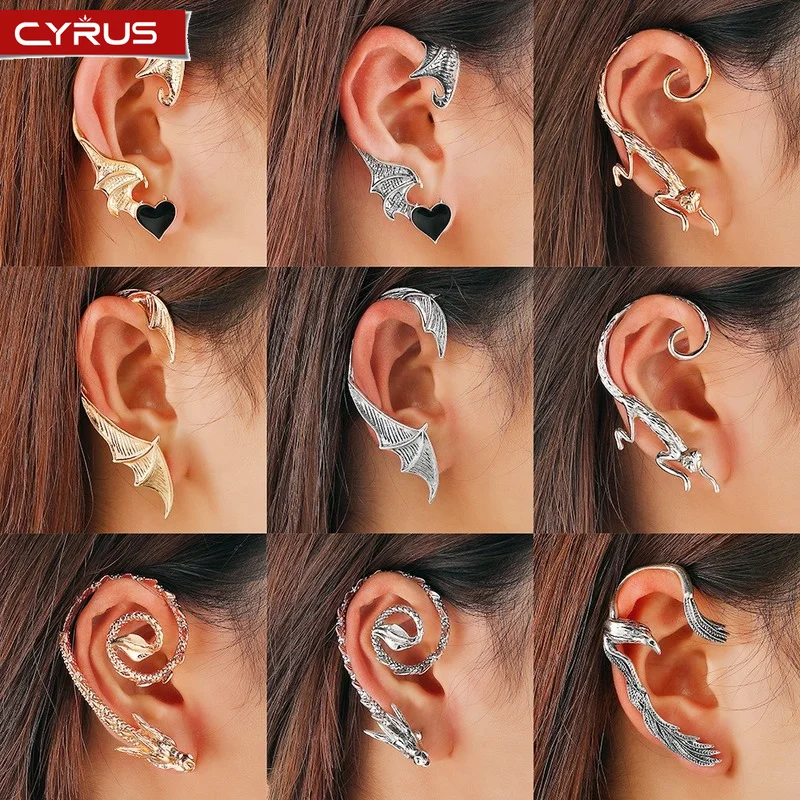 Женские винтажные серьги-клипсы Goth с животными, котом, черным ухом, драконом, крылом летучей мыши и эльфом, ювелирные изделия для Хэллоуина