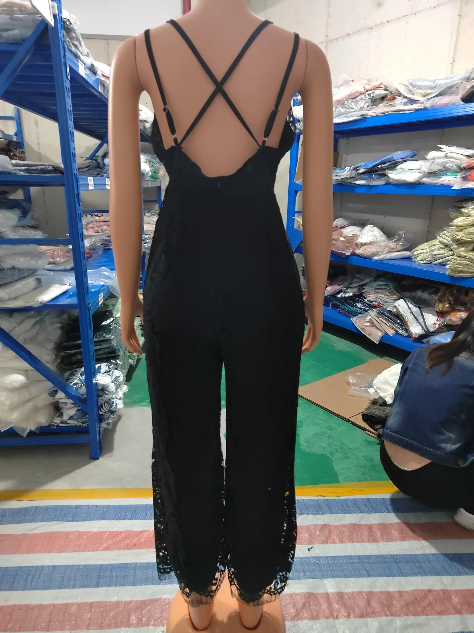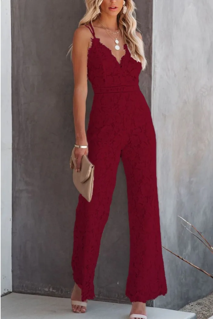 Летний Новый Стиль однотонный кружевной комбинезон без рукавов на б...
