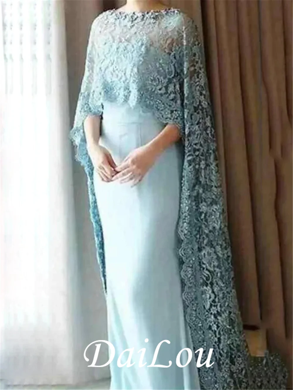 Стиль: элегантныйСилуэт: футляр/колоннаПодол/шлейф: длина в полВырез: круглый вырезТкань: кружево, шифонЗастежка: молнияРукав Длина: 3/4 Длина рукавУкрашение: кружево, аппликацииУпаковка: нет