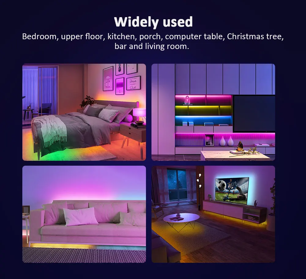 Светодиодная подсветка телевизора может освещать игровой монитор, стол, книжную полку в игровой комнате. Или добавьте цвета для вашей кухни, спальни, гостиной и других мест в доме. Примечание: подсветка телевизора не является водонепроницаемой.