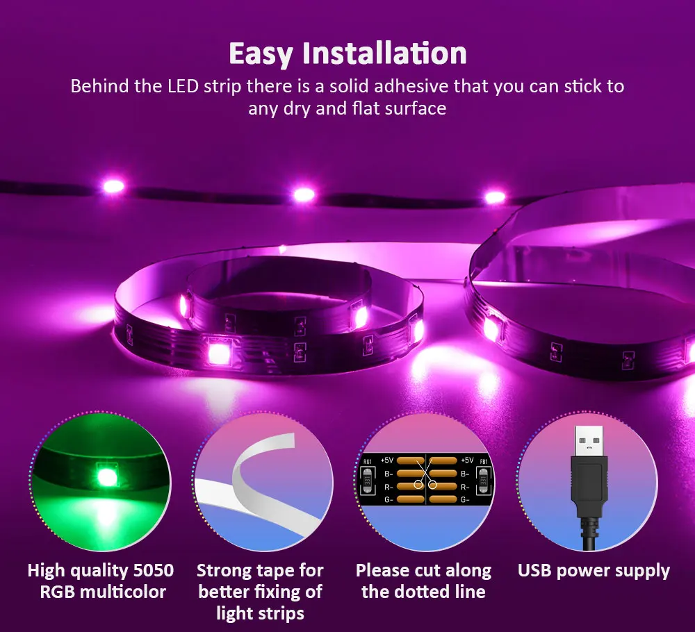 Существует сильный контраст между экраном телевизора и темной комнатой. Подсветка телевизора помогает уменьшить контрастность и снять напряжение глаз.При подключении к usb-питанию 5В 1A TV светодиодные лампы для телевизора включаются и выключаются с помощью телевизора.
