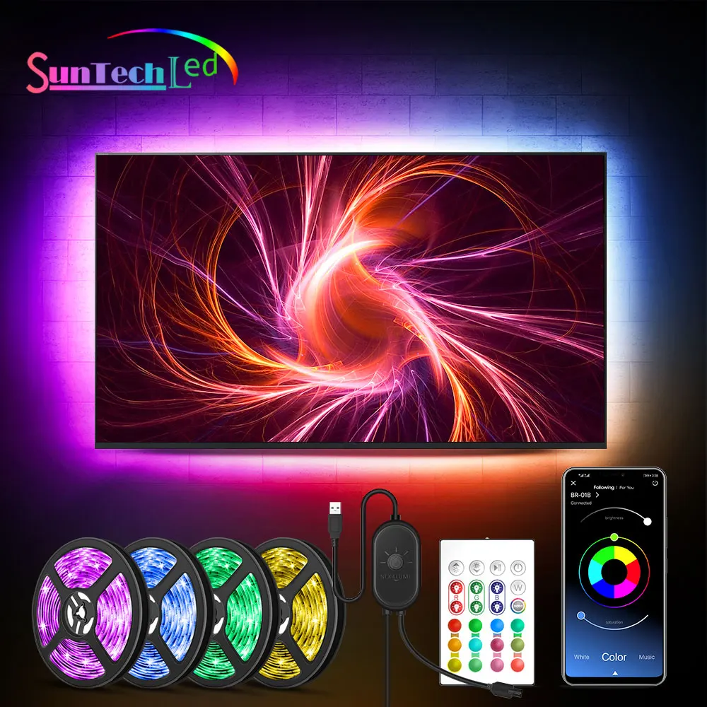 Подсветка для телевизора Suntech, 10 м, 15 м, RGB подсветсветодиодный для телевизора с дистанционным управлением, синхронизация музыки, подсветка для ТВПКноутбука, питание от USB