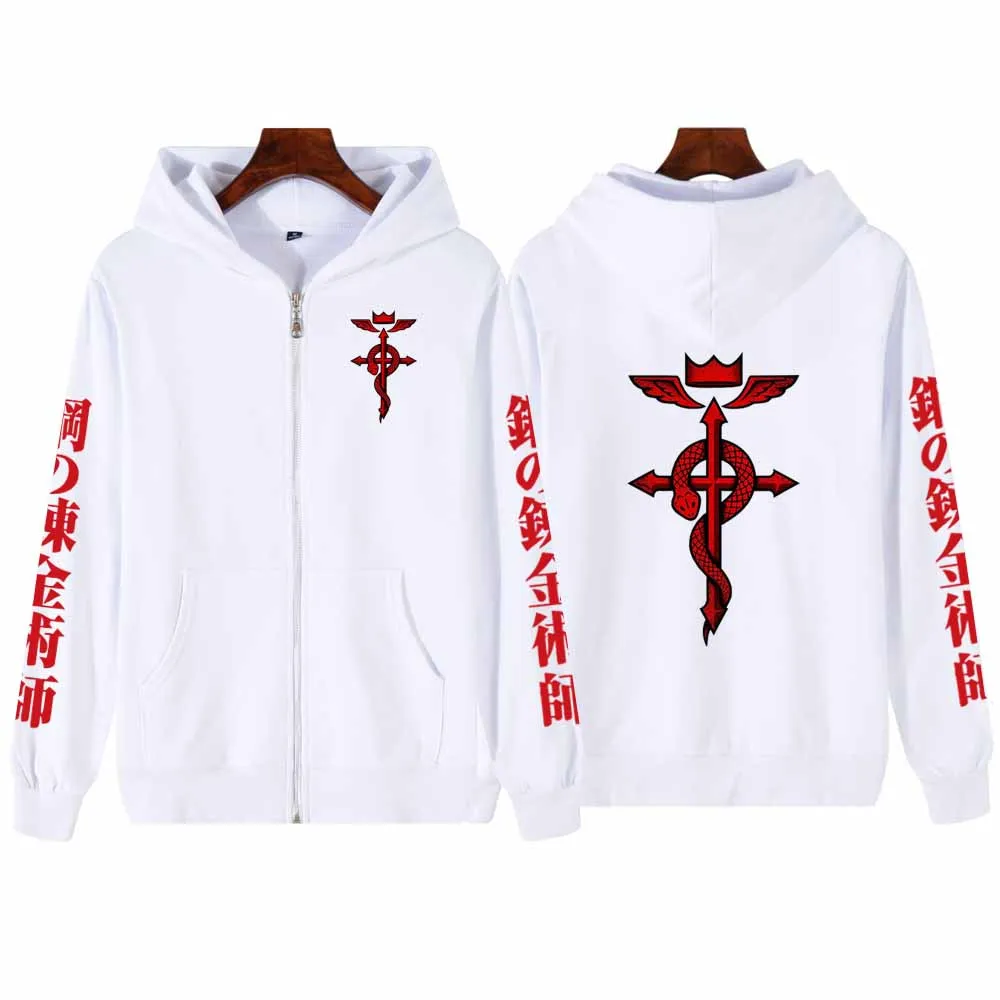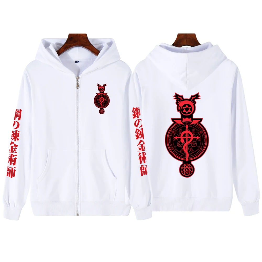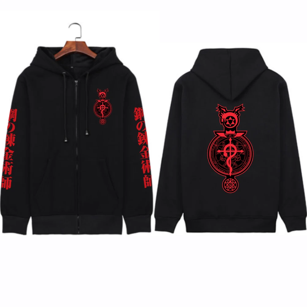Аниме Толстовка Унисекс, модный цельнометаллический альхимик, косплей Харадзюку, пуловер на молнии, топы, повседневные