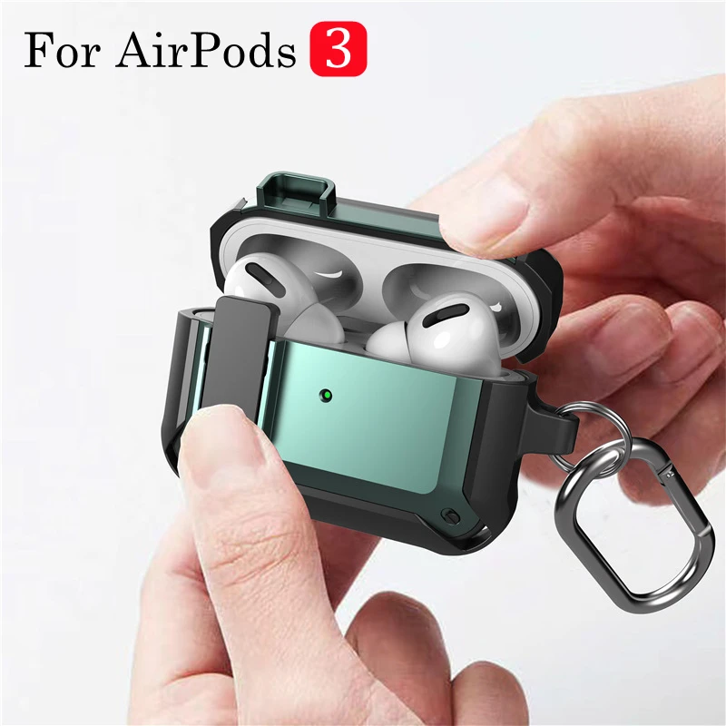 Защитный чехол для наушников Apple AirPods 3 с цепочкой и карабином, армированный чехол для AirPods 3, аксессуары для наушников