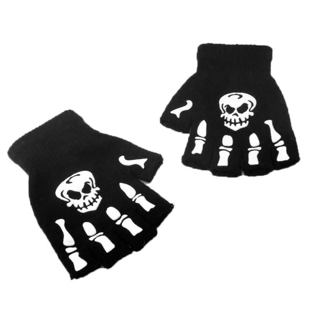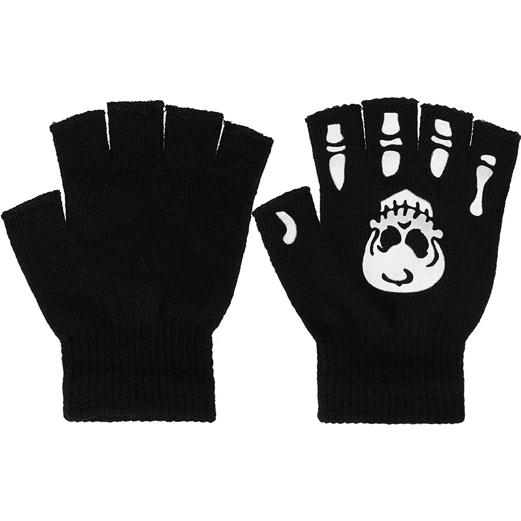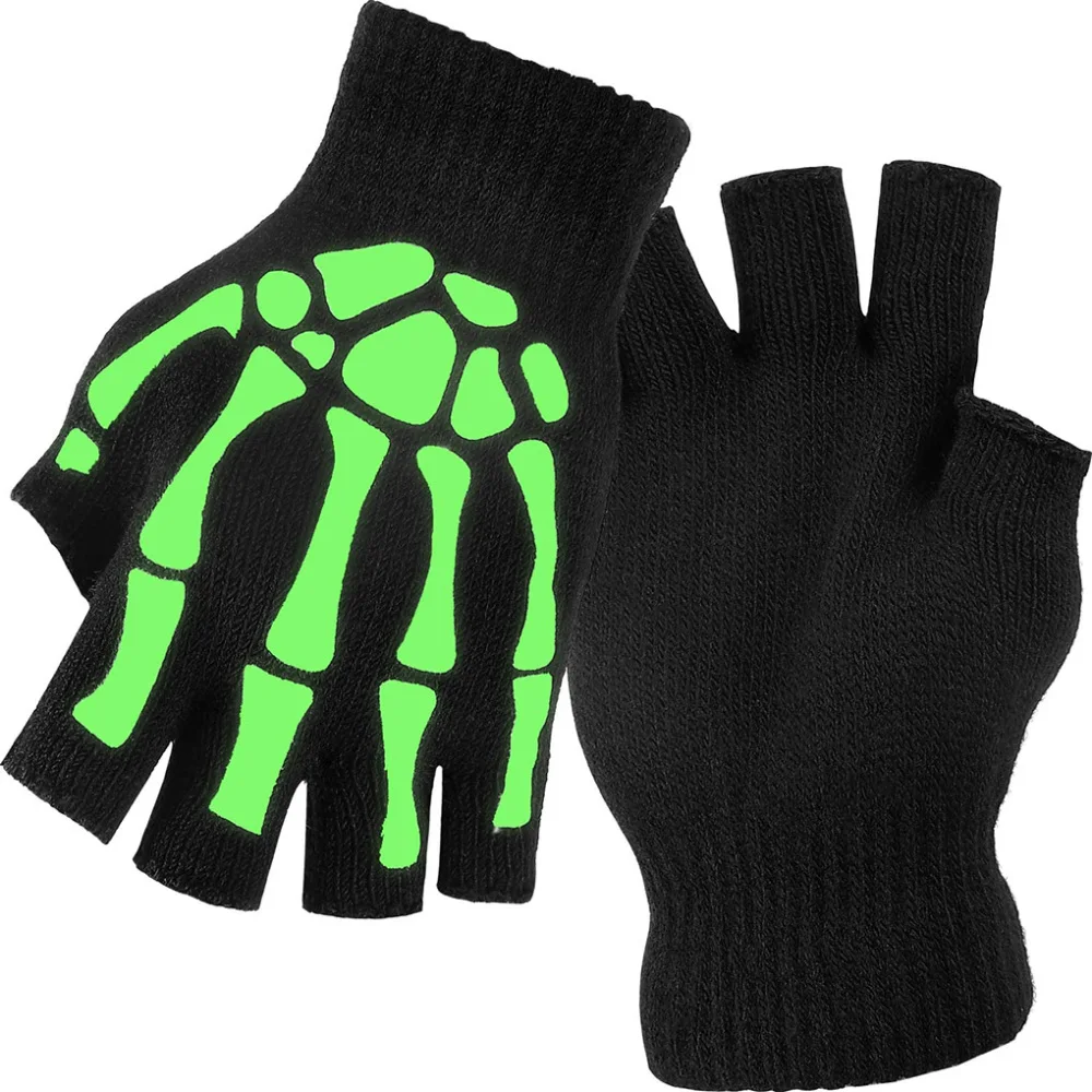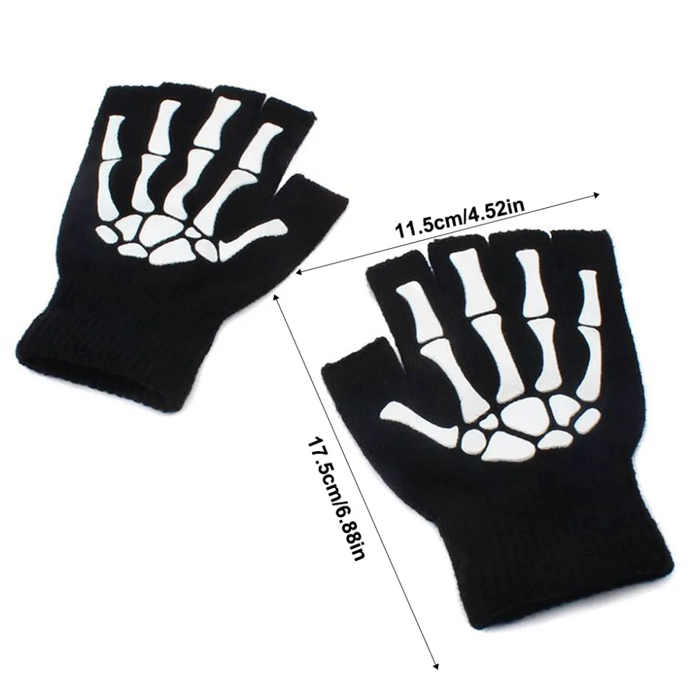 Теплые вязаные перчатки для мужчин и женщин, мужские велосипедные Нескользящие перчатки на запястье для тренировок, рукавицы с полупальцами, перчатки с принтом скелета, головы и захвата