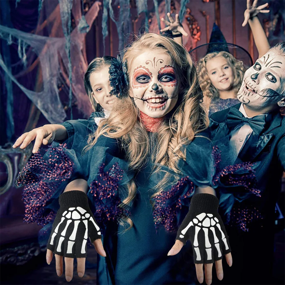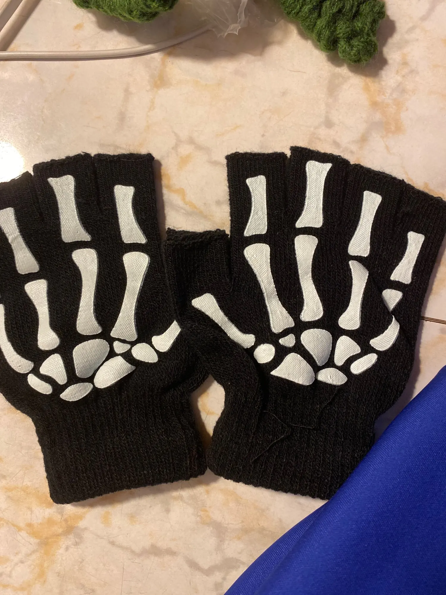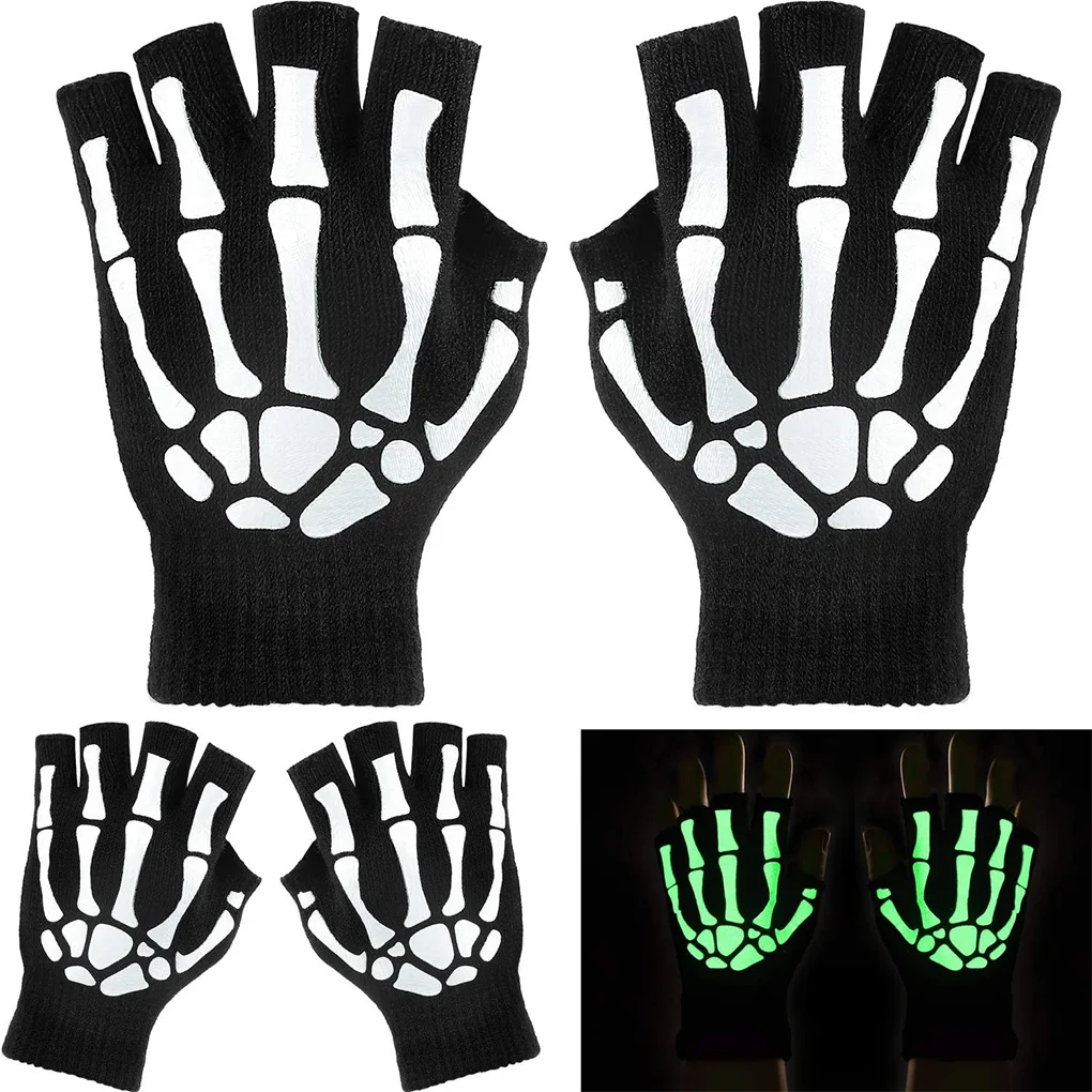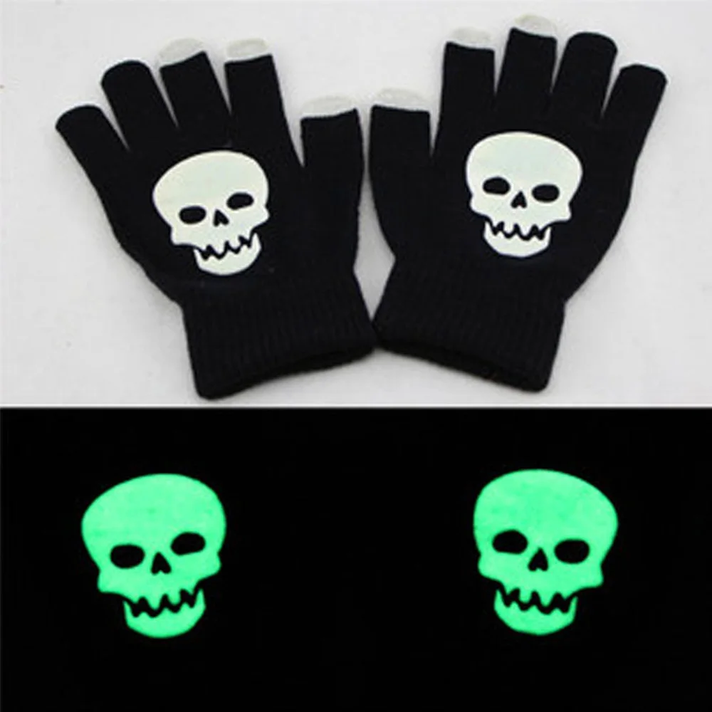 Теплые вязаные перчатки для мужчин и женщин, мужские велосипедные Нескользящие перчатки на запястье для тренировок, рукавицы с полупальцами, перчатки с принтом скелета, головы и захвата