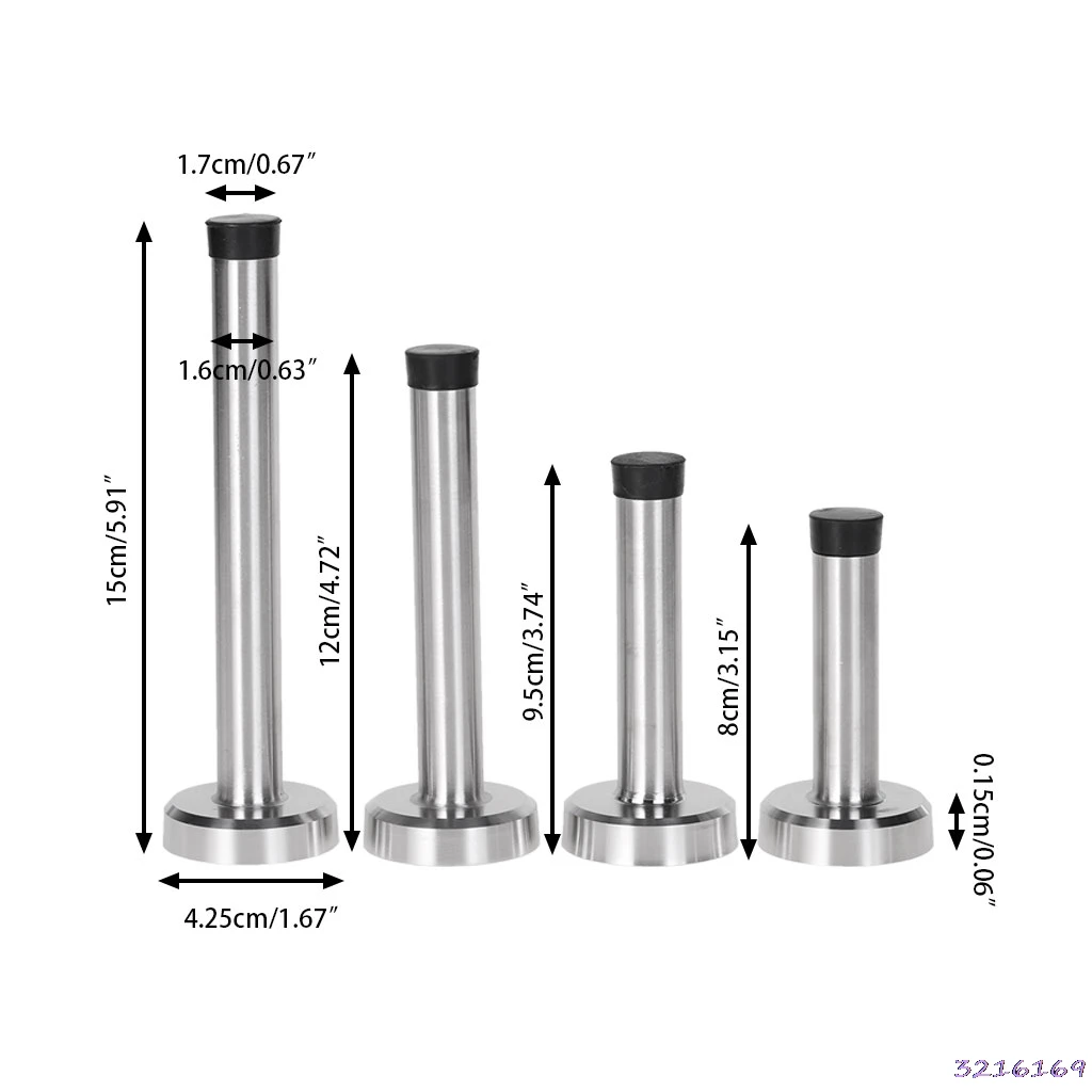 Спецификация:Материал: нержавеющая сталь, резинаРазмеры: как показано на фотографии. (прибл.)Дополнительная высота: 1 #80 мм (3,15 дюйма), 2 #95 мм (3,74 дюйма), 3 #120 мм (4,72 дюйма), 4 #150 мм (5,9 дюйма)Резиновая диаметр: 1,7 см (0.67in)Диаметр дна: 4,25 смСредний диаметр: 1,6 см (0.63in)Базовая толщина: 0,15 см (0.06in)Цвет: серебристый и черныйКоличество: 1 комплект