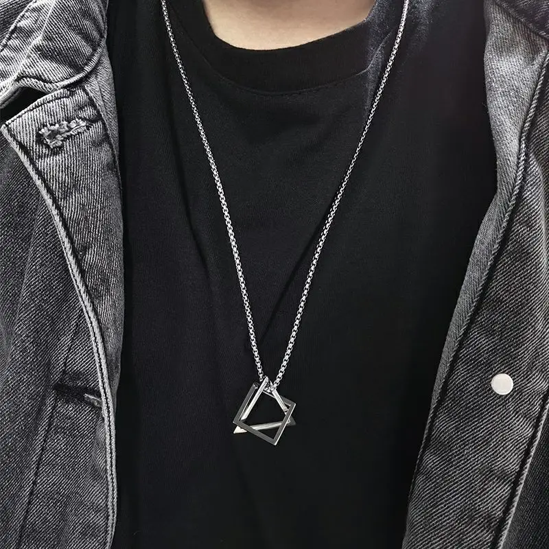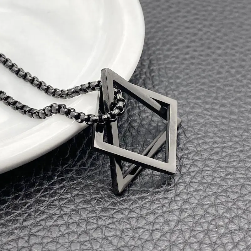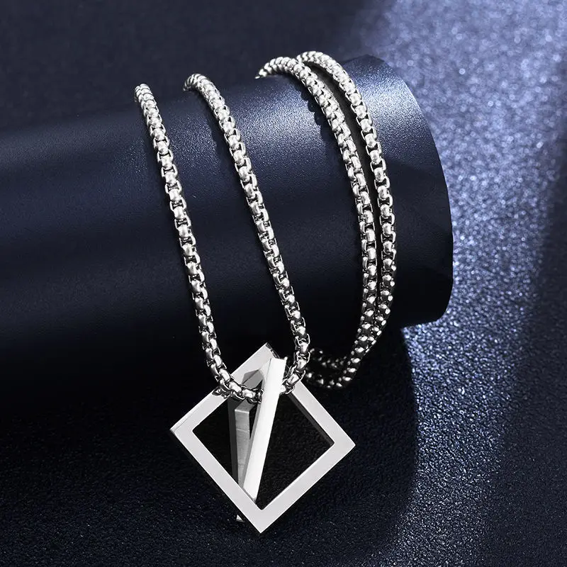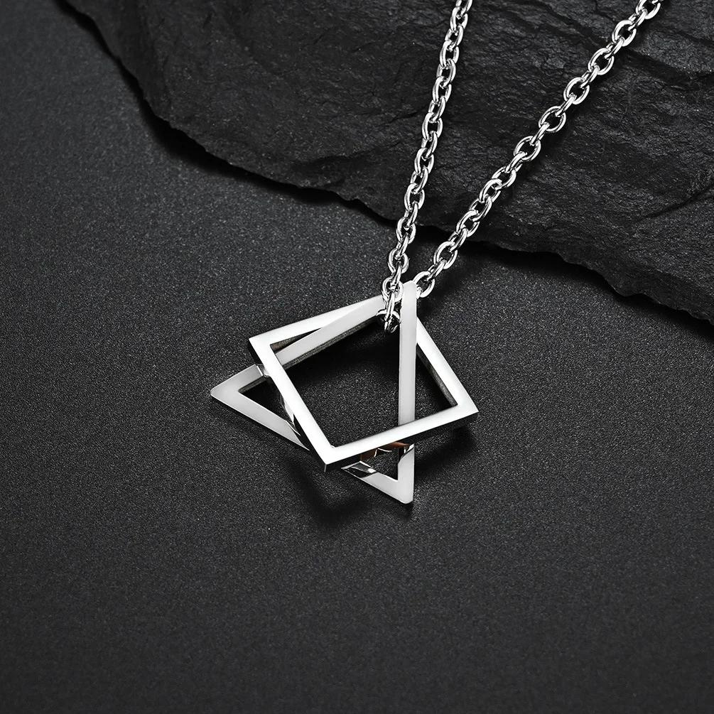 Мужской кулон из нержавеющей стали, Геометрическая взаимная блокировка, квадратный треугольник, современный модный геометрический интерьер