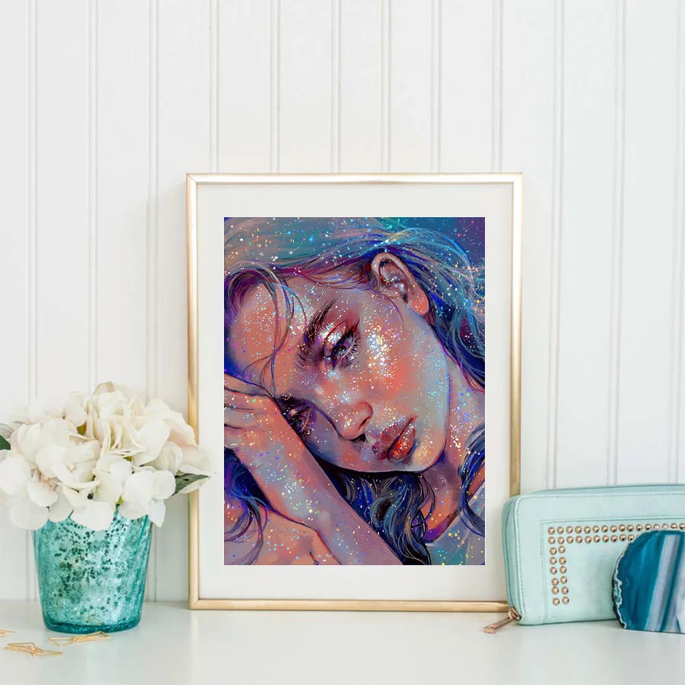 Huacan, алмазная живопись, портрет девушки, алмазная вышивка, мозаика, Женская мозаика, вышивка крестиком, домашний декор