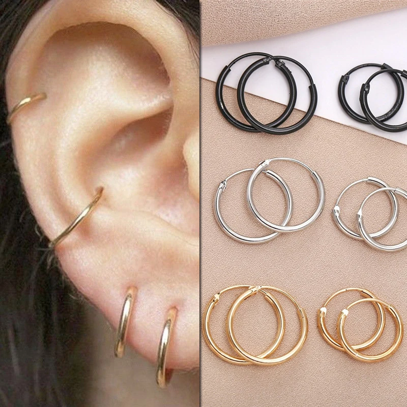 Круглые серьги-кольца диаметром 1,01,21,5 см для женщин и мужчин, клипсы для ушей в стиле панк, ювелирные изделия, золотистые и Серебристые Металлические серьги-гвоздики