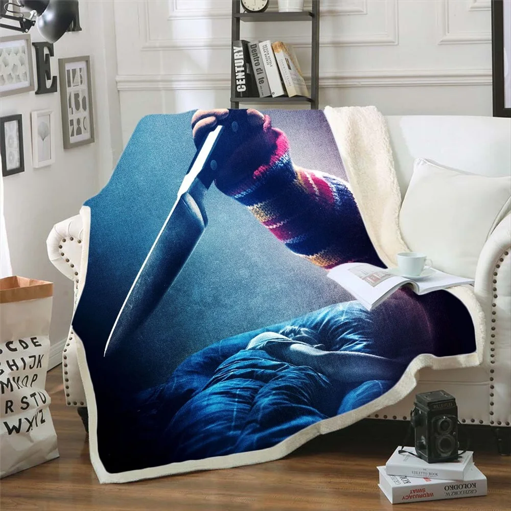 Новейшее одеяло из мультфильма ужасы, детское игровое одеяло с рисунком Чаки, готическое флисовое переносное покрывало из микрофибры, постельное белье