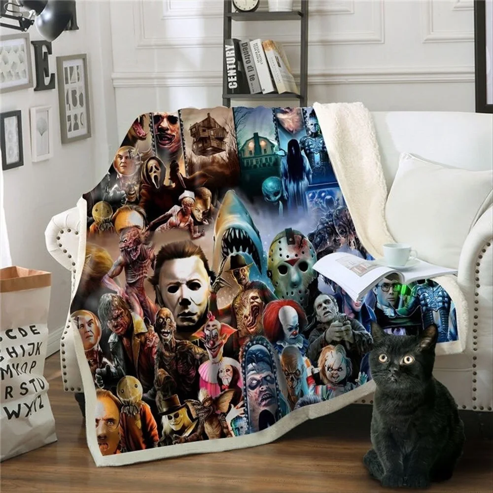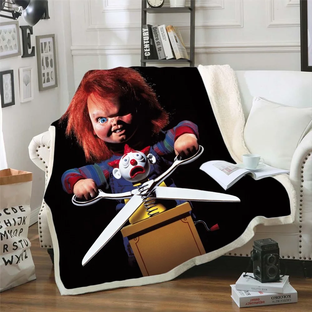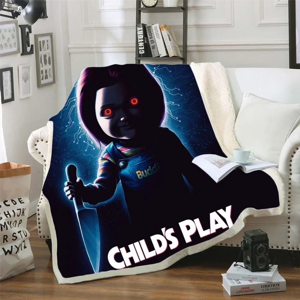 Новейшее детское одеяло в стиле фильма ужасов с героями игры «Чаки», готическое Флисовое одеяло с шерпой, переносное одеяло из микрофибры, постельные принадлежности