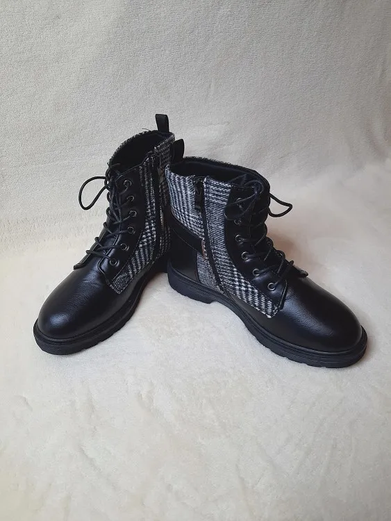 Ботинки универсальные от XIEBAO001 Store. Ботинки приехали в Беларусь за месяц. Упакованы были в зип-пакет, при транспортировки не помялись. Универсальная модель на осень-весну. Модель действительно универсальная - хорошо смотрятся, как с брюками, джинсами, так и с трикотажным чёрным платьем. Имеют эстетический внешний вид: лаконичные, с интересной вставкой из ткани. У них имеется пряжка в районе пятки, которую можно отрегулировать под свою ногу и небольшой каблучок (3.5 см.). А шнуровка позволяющая регулировать ширину верхней части и подъём. Сбоку находится молния. Внутри подкладка с утеплителем, стельки хорошие, мягкие, не вынимаются. Ботинки хорошие, полностью соответствуют описанию и фото продавца и размерная сетка соответствует.