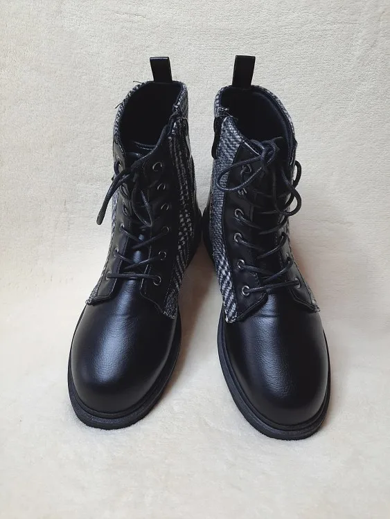 Ботинки (осень). Ботинки пришли без коробки,но были очень тщательно упакованы,соответственно при транспортировке не пострадали. Материал- искусственная кожа. Пошив фабричный, всё сделано качественно и аккуратно. По весу лёгкие.Колодка удобная, нигде не жмёт и не давит. Имеется шнуровка и замок. Я пользуюсь замком,а шнуровка для красоты. Идут размер в размер. s.click.aliexpress.com/e/_AlAOZ8 Стильные и удобные!