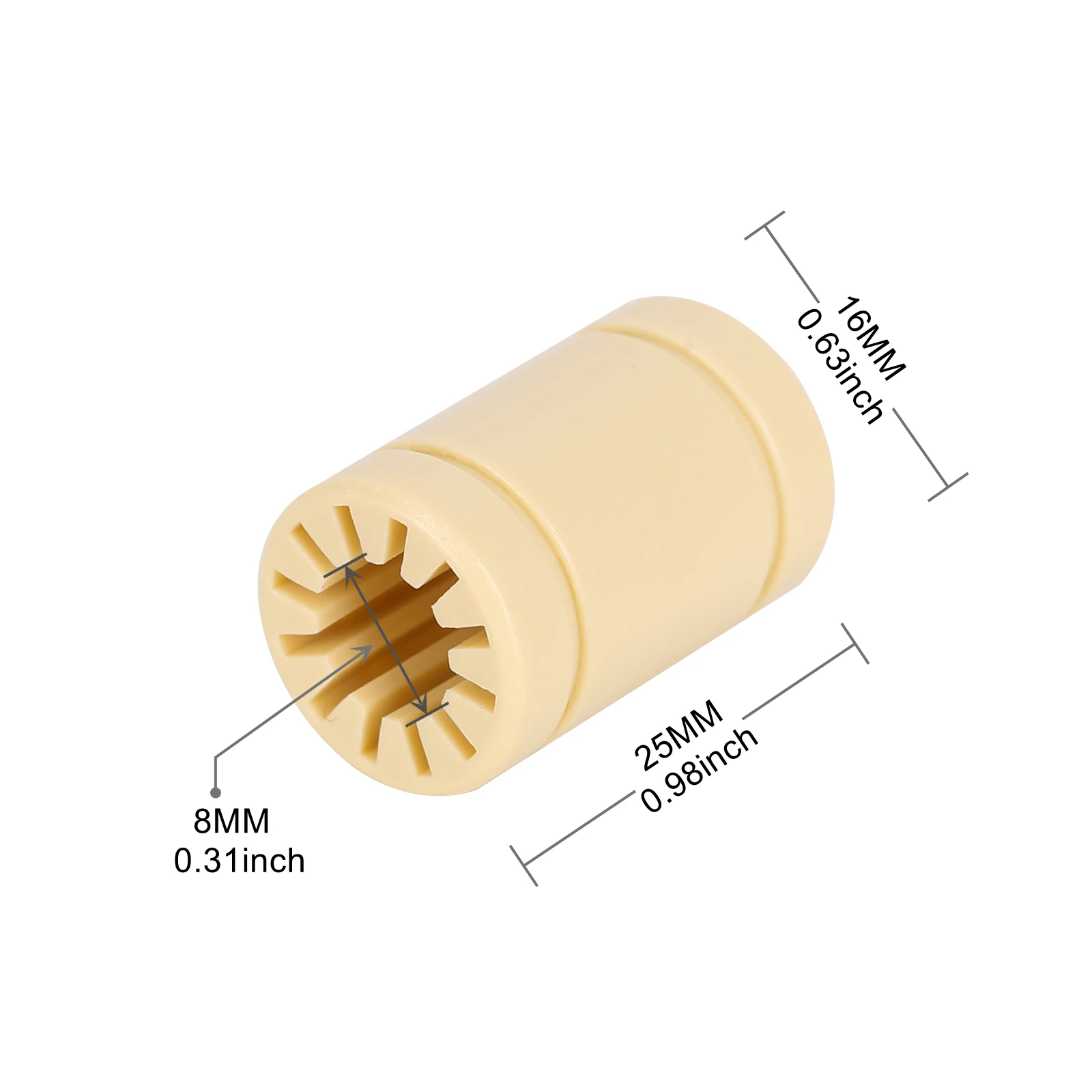 1. Особенности: подшипники LM8UU изготовлены из твердого полимера, 8 мм (внутренний диаметр) * 16 мм (наружный диаметр) * 25 мм (толщина).2. Преимущества: полимерные подшипники могут уменьшить вибрацию и шум, а также использовать смазочные материалы во время установки, чтобы получить хорошие результаты.3. Преимущества: LM8UU полимерный подшипник может заменить металлический подшипник LM8UU (обратите внимание, что размер отличается), подходит для скользящего использования малые станки с ЧПУ (не подходит для подшипников тяжелых объектов).4. Доказательства: LM8UU полимерный подшипник подходит для RepRap/Prusa/Mendel 3D принтеров, линейных валов, скользящих частей небольших машин.5. Упаковка включает: 12 шт. * LM8UU полимерные подшипники