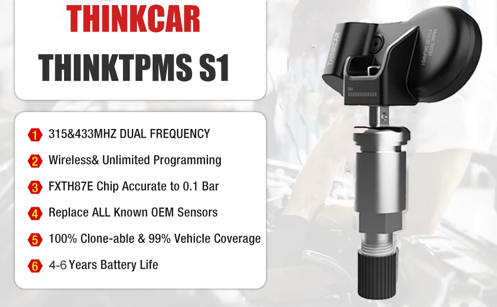 THINKCAR THINKTPMS S1 Автомобильный датчик давления в шинах с двойной частотой 315 МГц433 МГц, замена оригинального датчика, совместимый с THINKTPMS G1