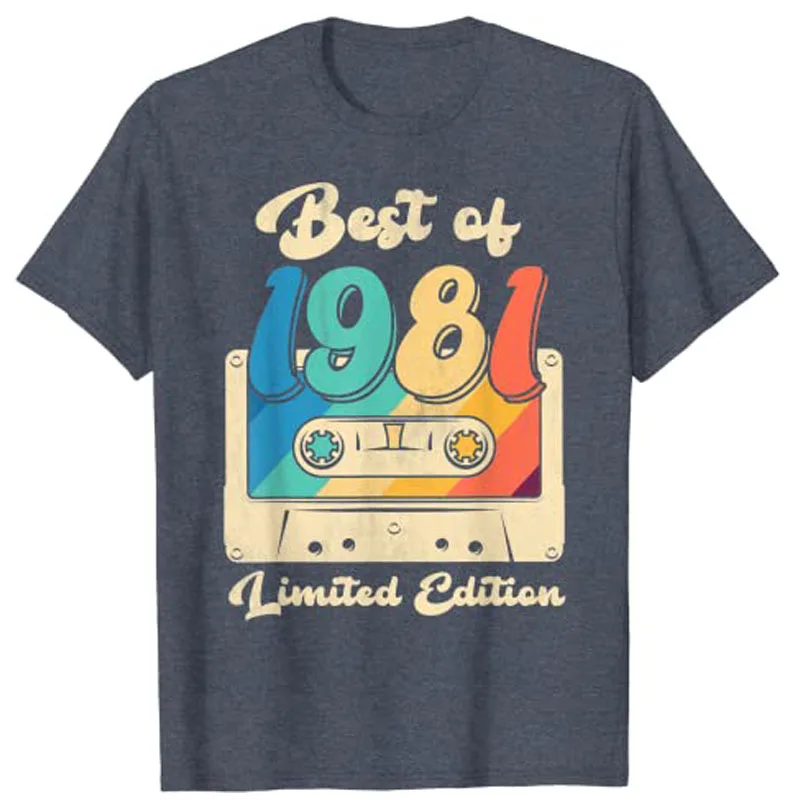 40th birthday футболка, 40th birthday shirt, born in 1981, best of 1981 shirt cassette, рождественские подарки для мужчин и женщин 40 лет.