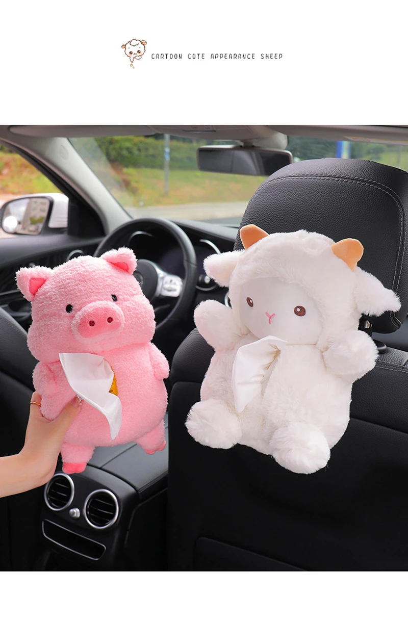 Kawaii, коробка для салфеток для автомобиля, плюшевая кукла, поросенок, овца, бумажные салфетки, держатель, автомобильный Стайлинг, портативный бумажный чехол, держатель для салфеток для дома