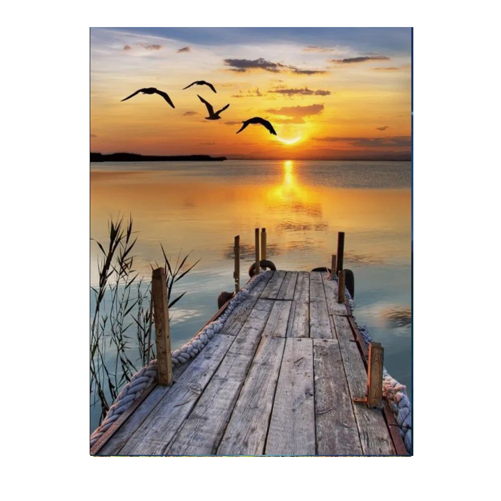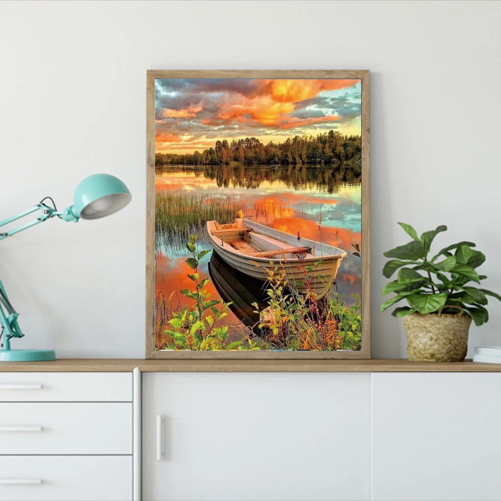 Pintura de diamante 5D, joyier de botaje, barco de paisaje, bordado...