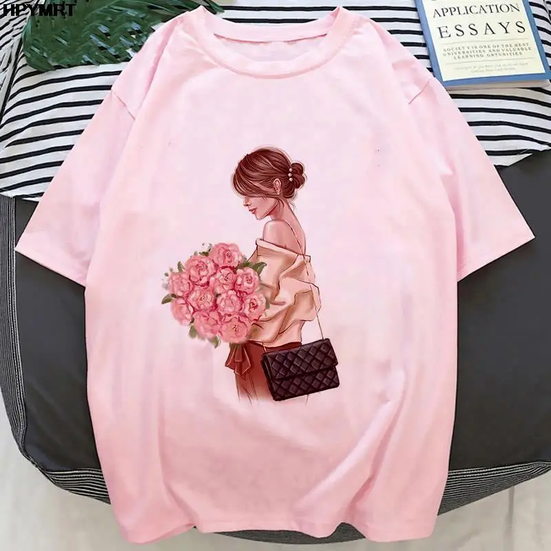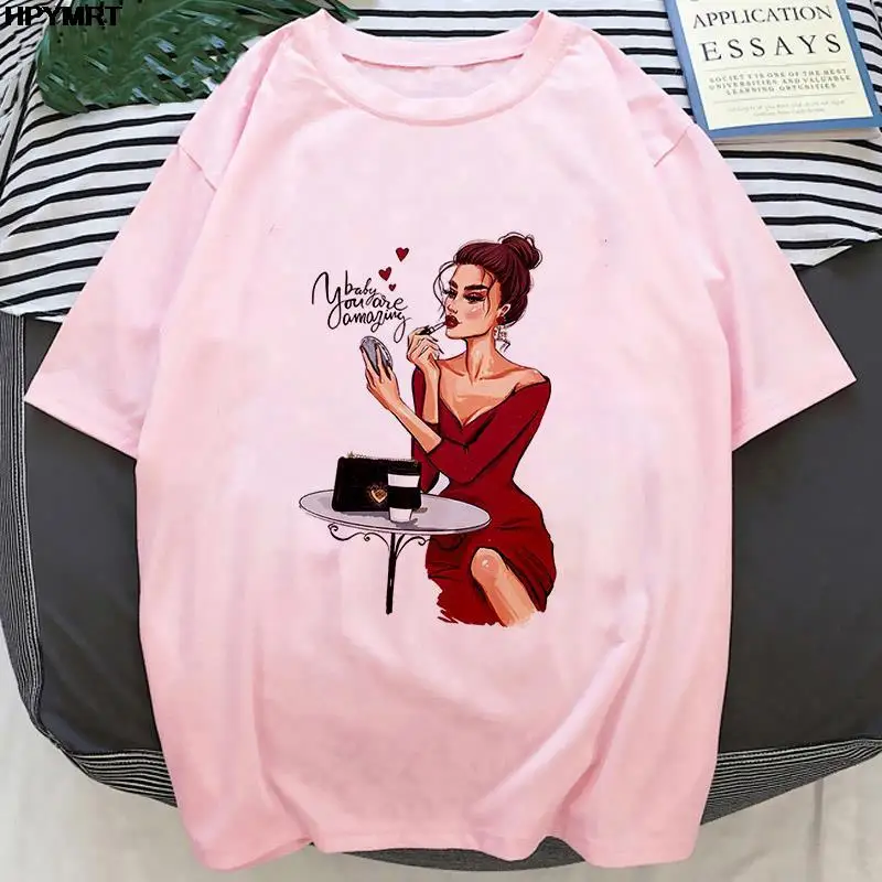 Розовая футболка с принтом на заказ, Женская футболка сделай сам с ...